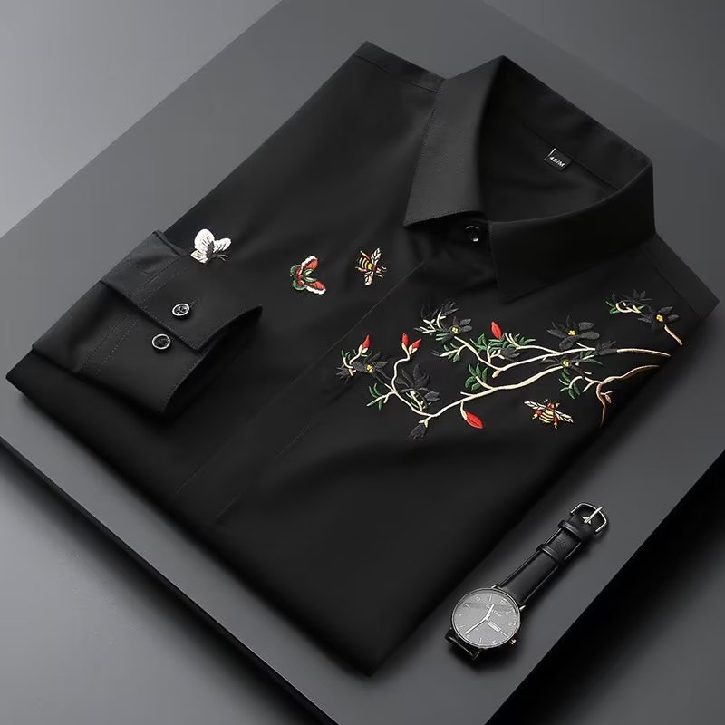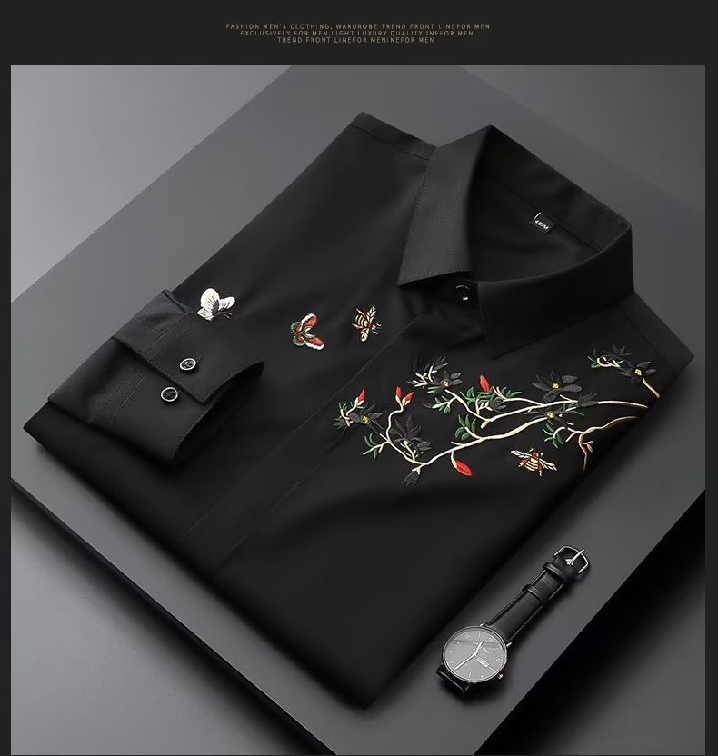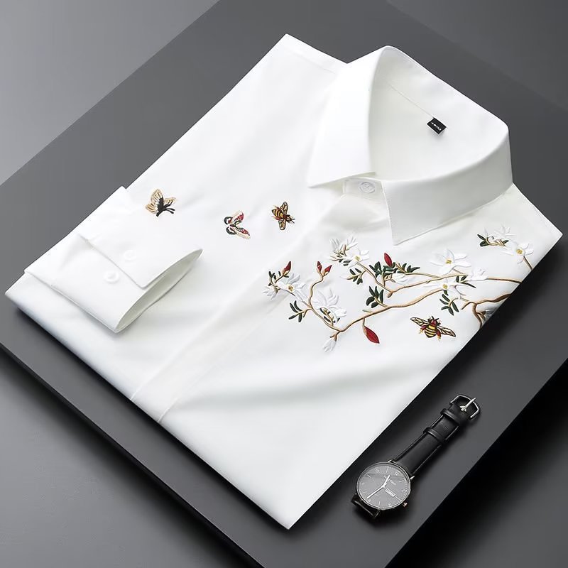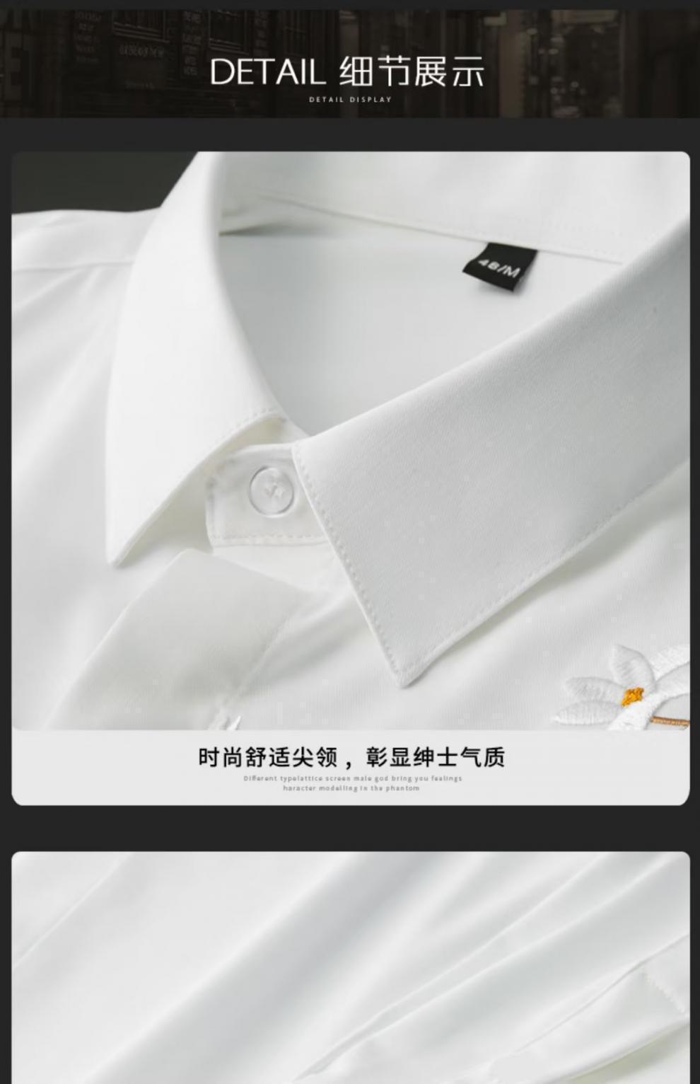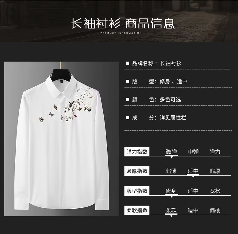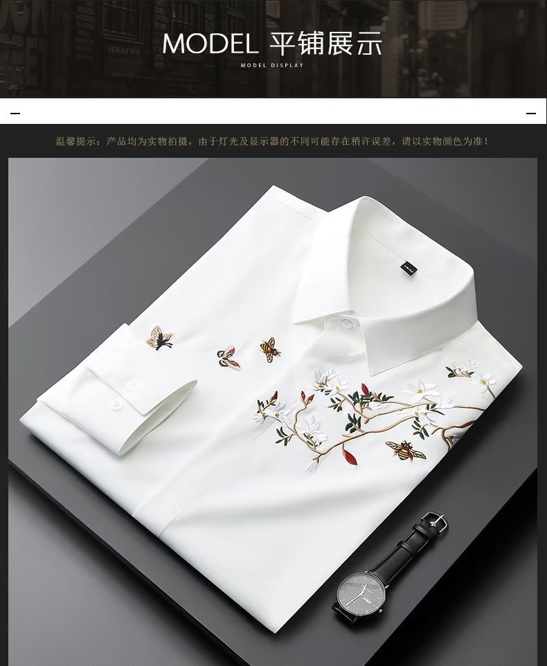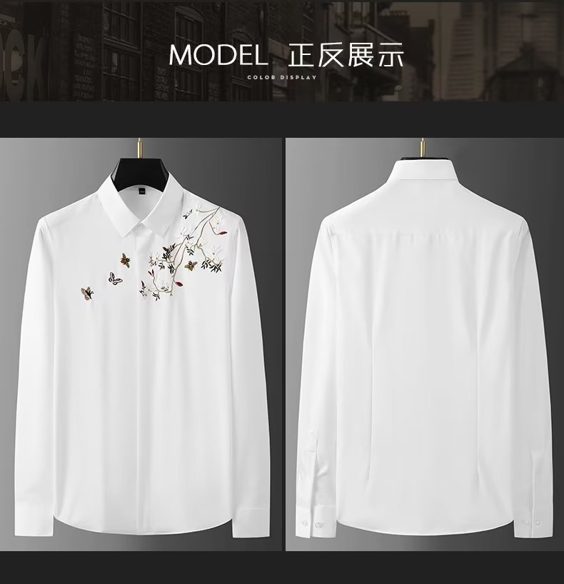 중국 스타일 수 놓은 흰색 셔츠 남자의 긴팔 2023 가을 비 다림질 슬림 핏 유행 최고 캐주얼 셔츠 남성스토어 가기