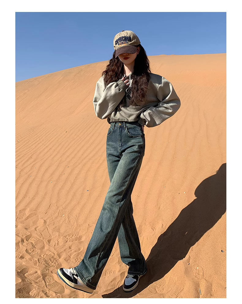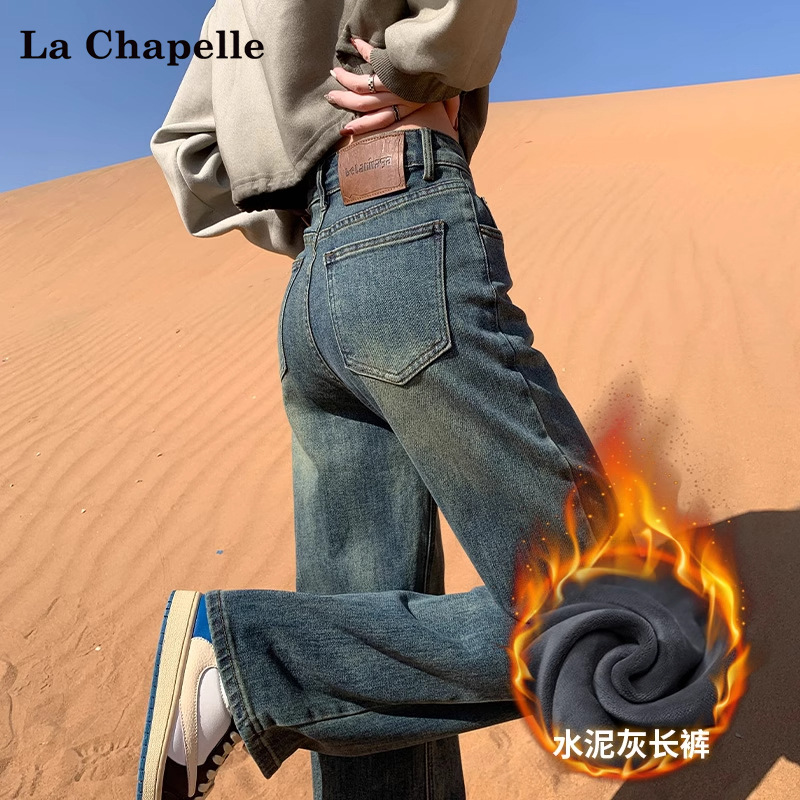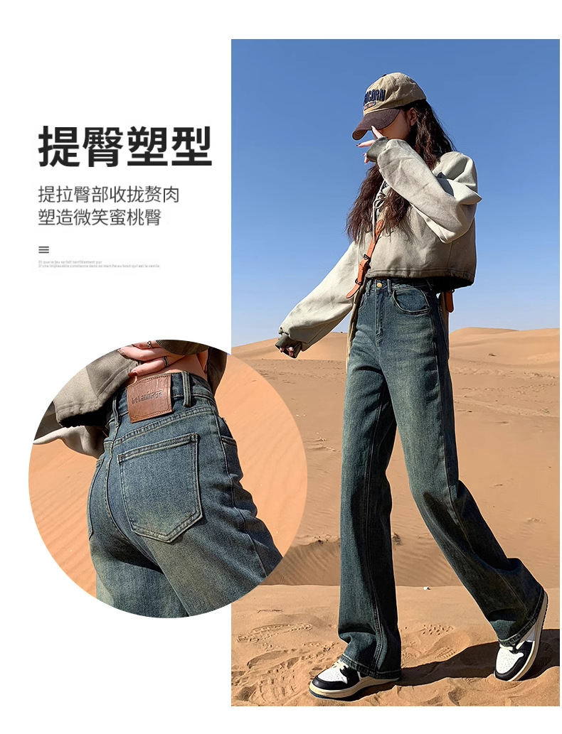 스트레이트 기모 청바지 여자 가을과 겨울 2024 유행 올매치 새로운 넓은 다리 느슨한 좁은 높은 허리 연기 튜브 바지스토어 가기