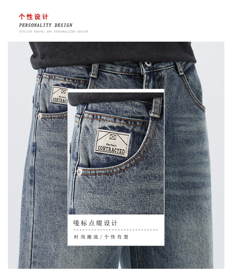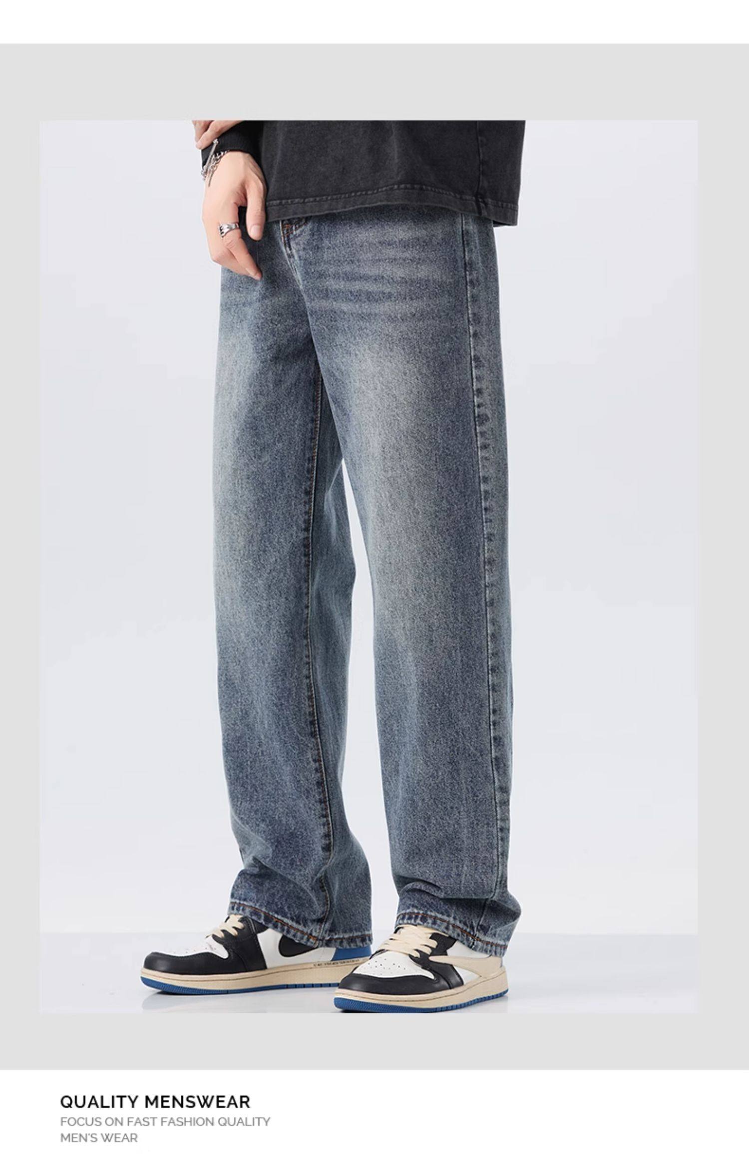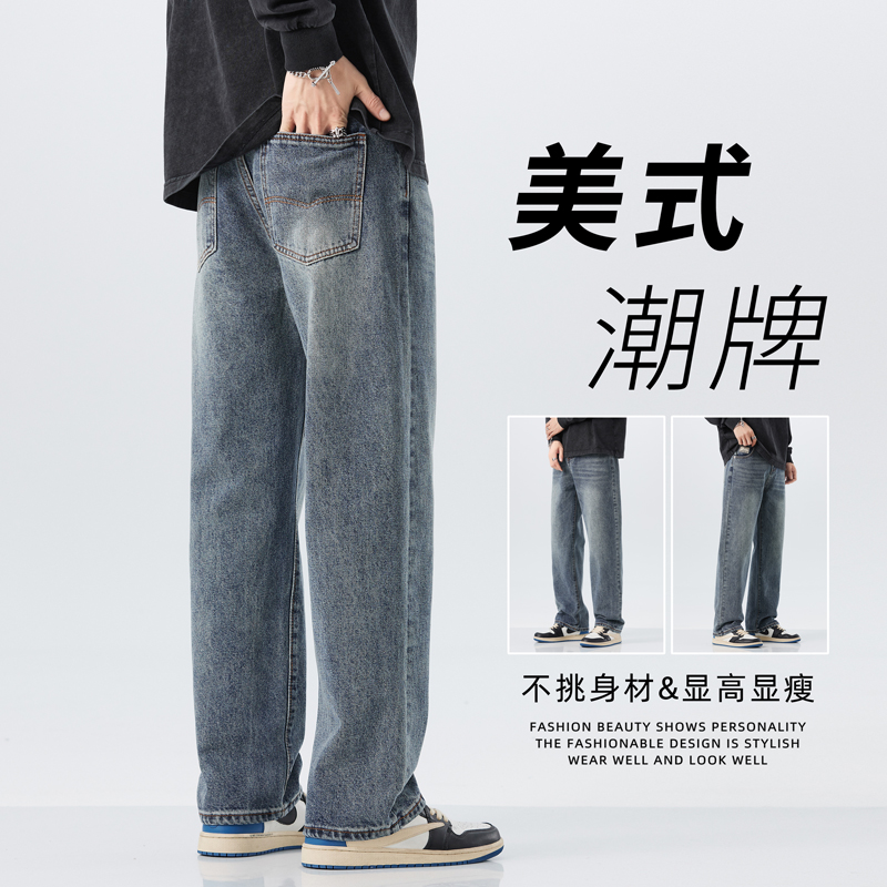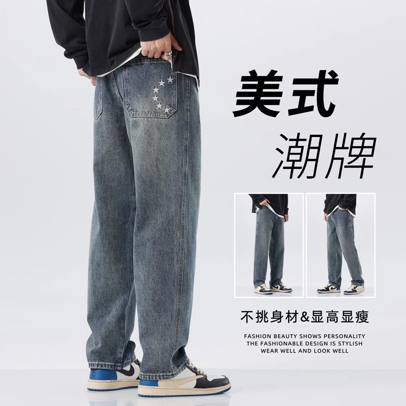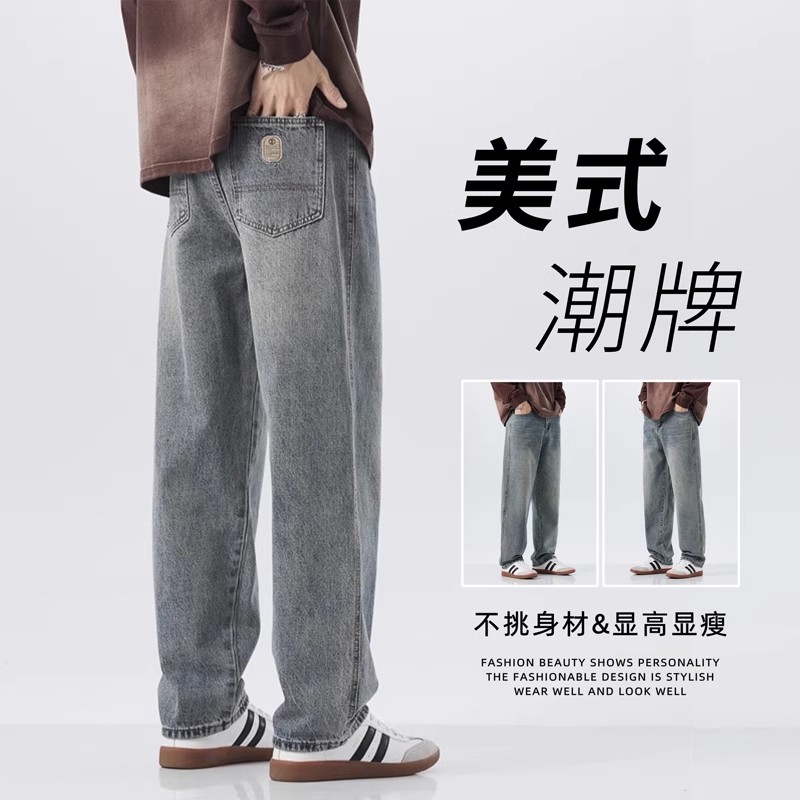 봄 청바지 남성 미국 스타일 트렌디 브랜드 느슨한 스트레이트 2025 봄과 가을 새로운 남성 캐주얼 와이드 다리 긴 바지스토어 가기