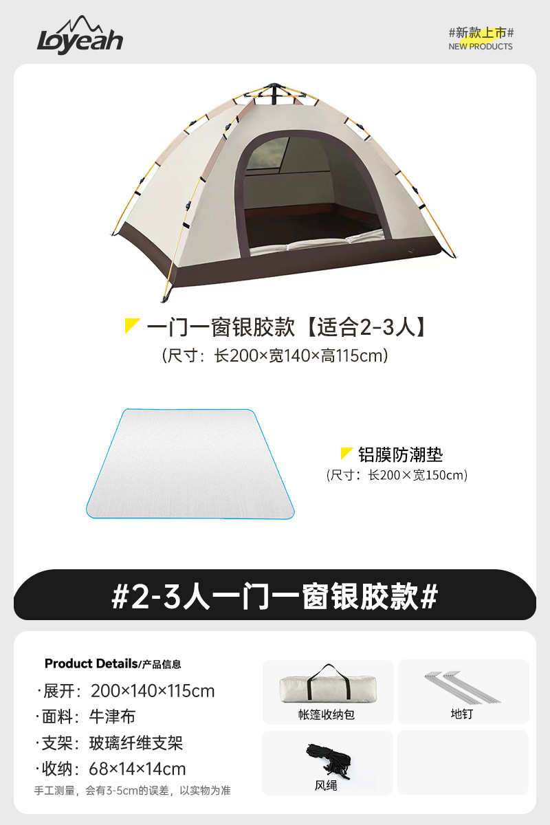 • [3~4인용 자외선 차단 모델] + 방습 매트 + 피크닉 매트 + 이중 자동 풍선 매트