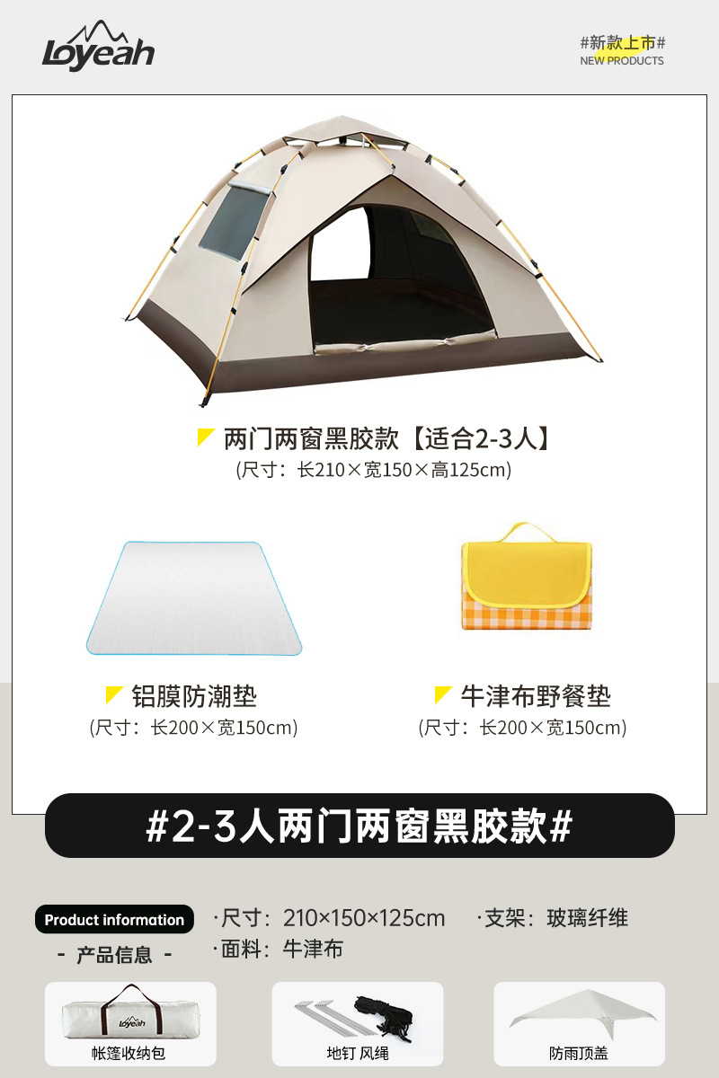 텐트 야외 접이식 휴대용 캠핑 장비 전체 세트 캠핑 야간 피크닉 차양 원 버튼 열기 및 닫기스토어 가기
