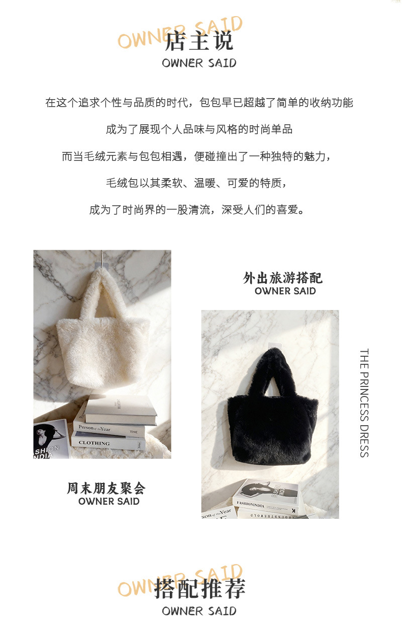 패셔너블한 대용량 퍼 가방 여성용 가을 겨울 퍼 핸드백 숄더백 크로스백 털이 부드러운 심플하고 다용도인 토트백스토어 가기