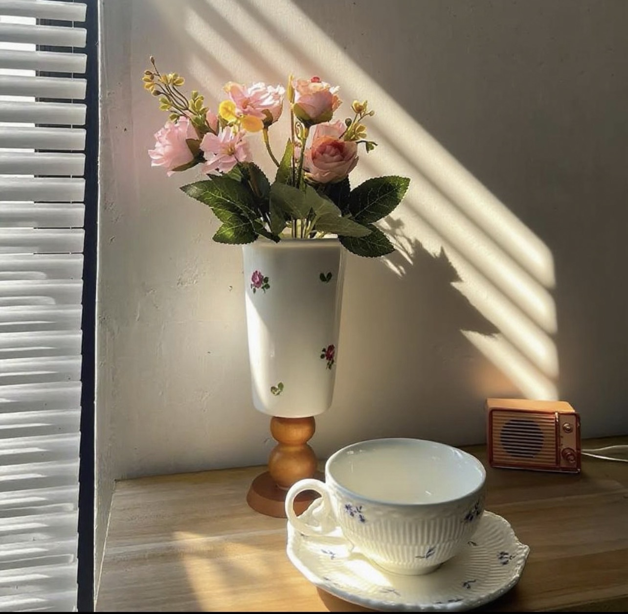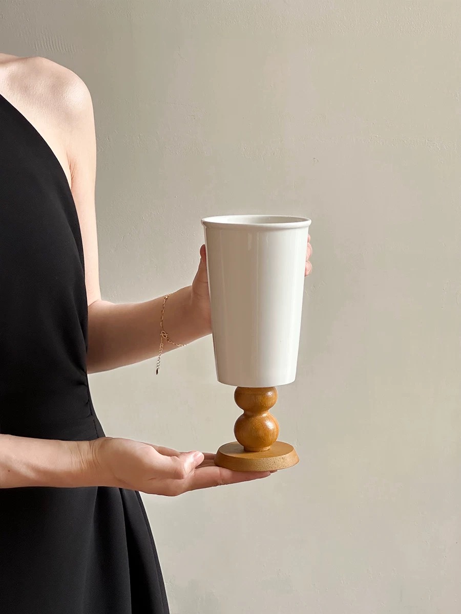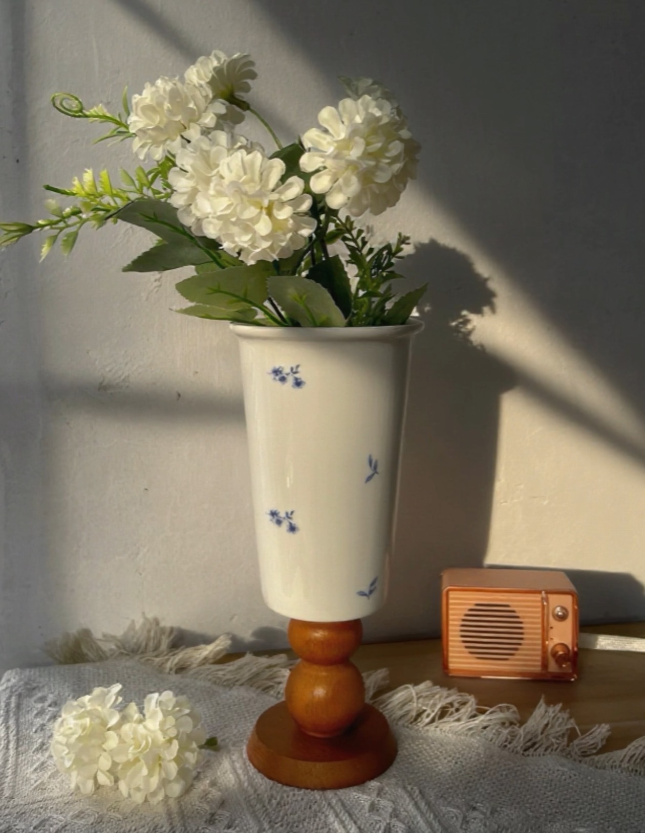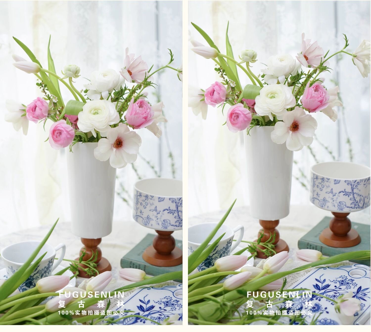 프렌치 레트로 스타일 나무 키 큰 세라믹 꽃병 고급 감각 꽃병 장식품 거실 입구 꽃 아로마 테라피 병