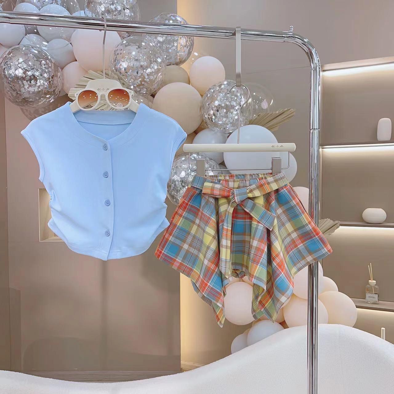 • 파란색 조끼 + 격자 무늬 퀼로트