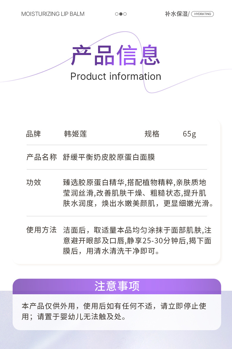 • Han Jilian-936 진정 및 균형 우유 피부 콜라겐 마스크