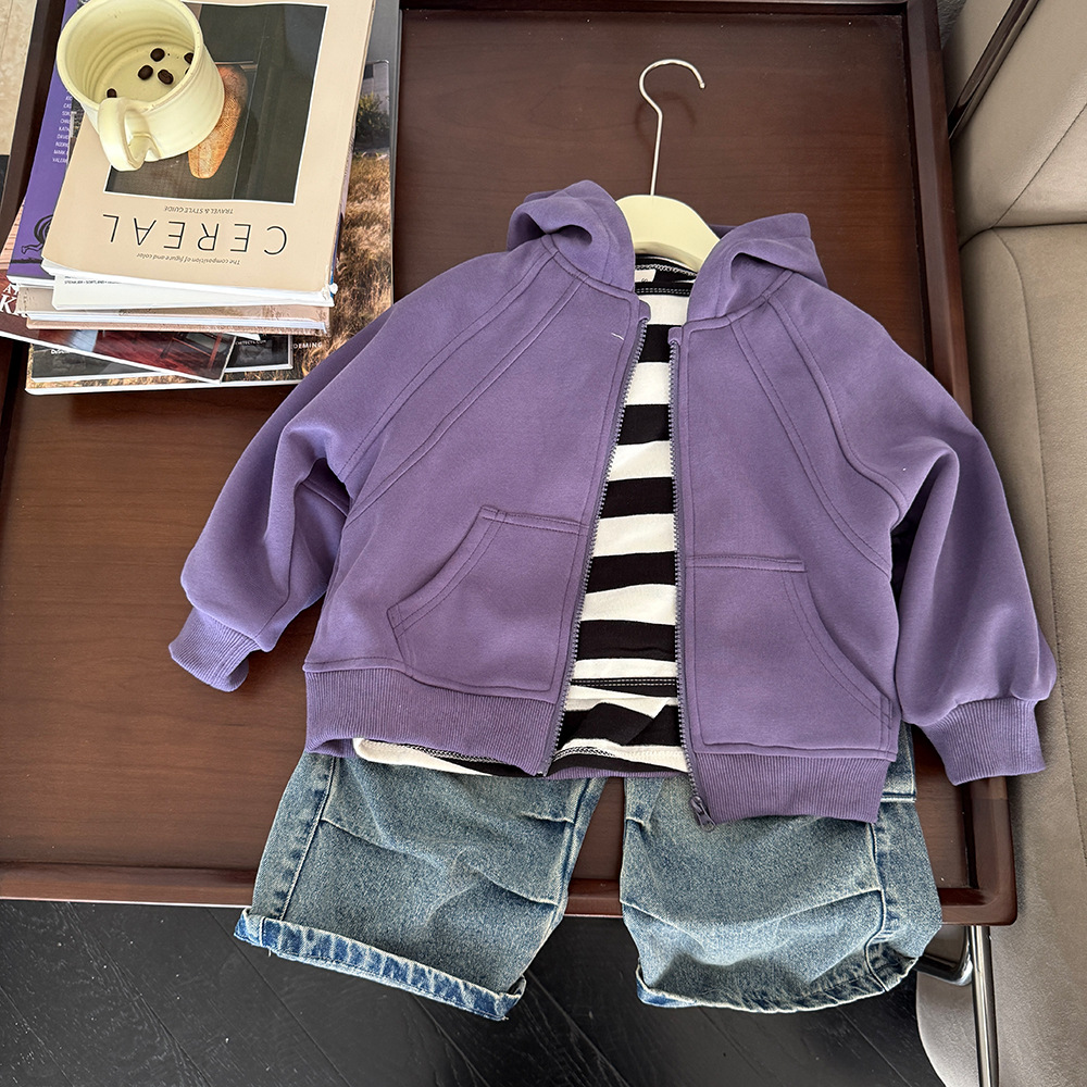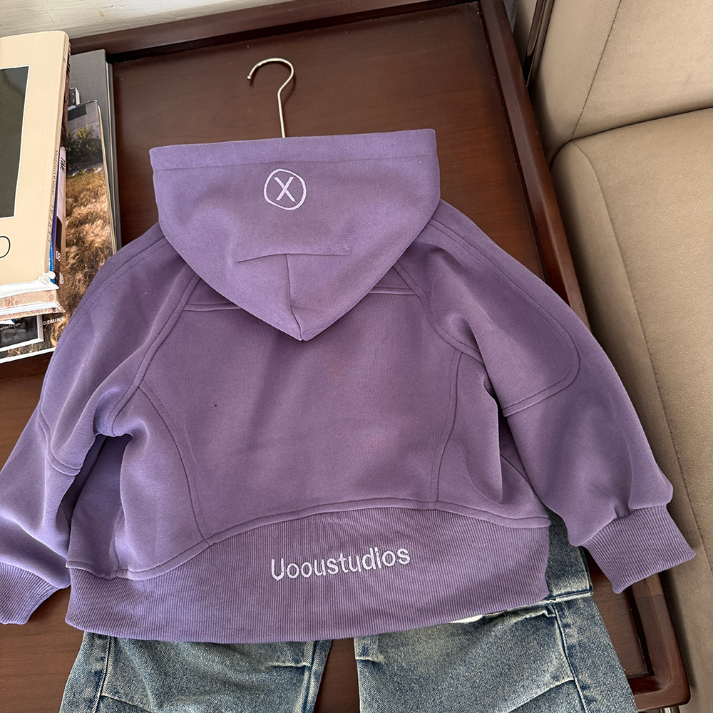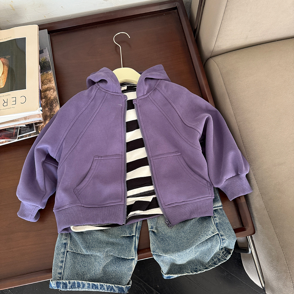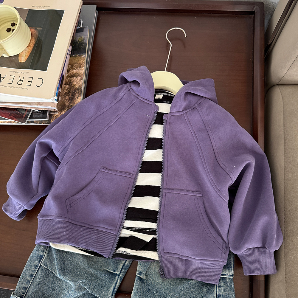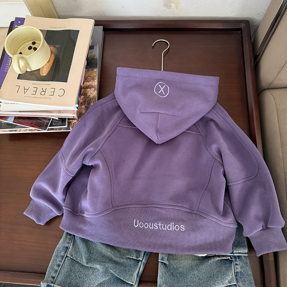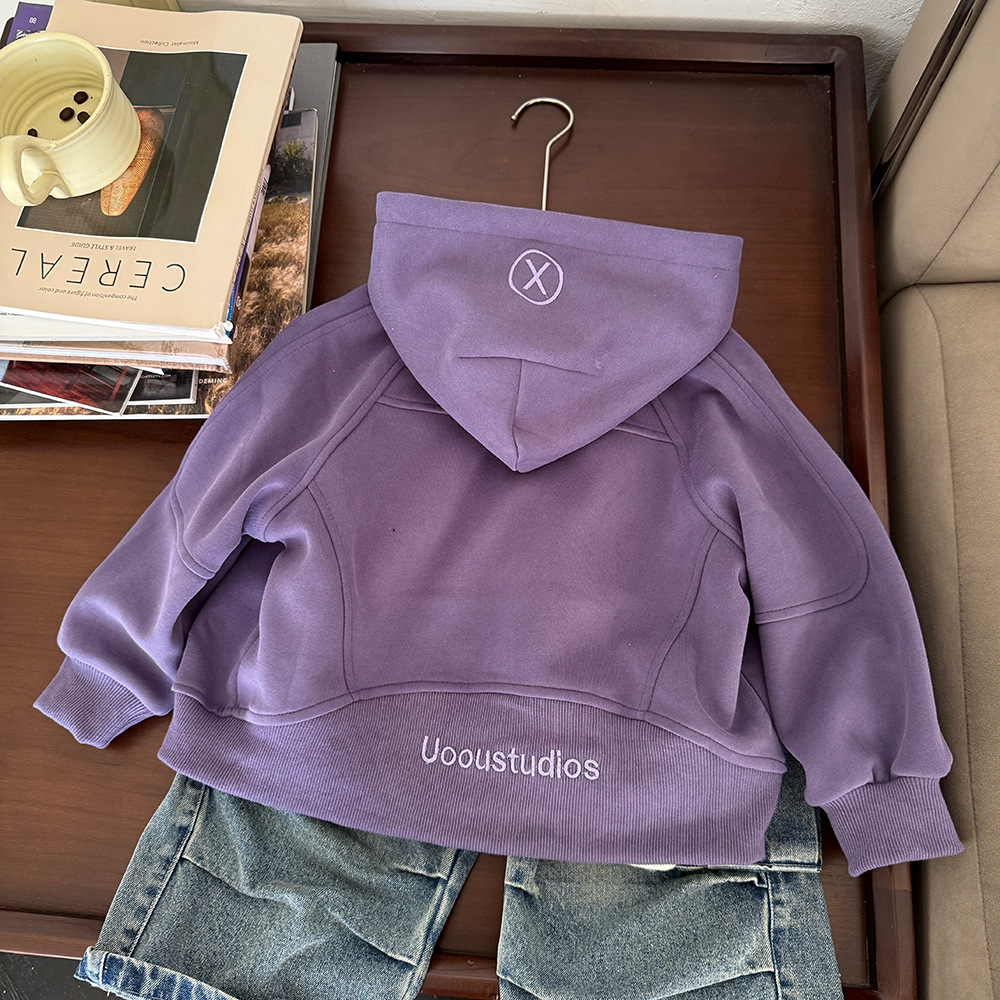 어린이 의류 봄 2025 새로운 중소 어린이 카디건 면화 재킷 한국 소년 후드 스웨터 코트 조수