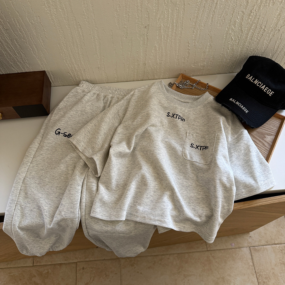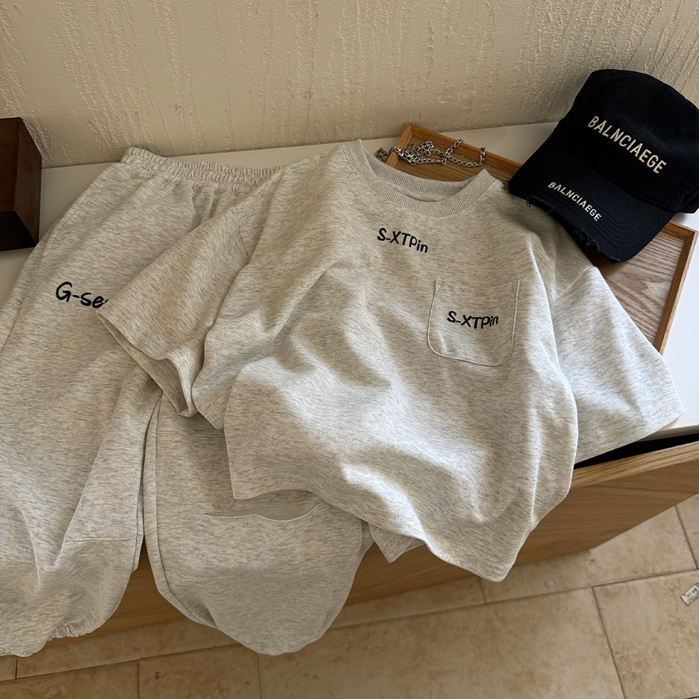 소년 스포츠 정장 여름 착용 2025 새로운 스타일 어린이 운동복 아기 소년 가을 유행 캐주얼 투피스 세트스토어 가기