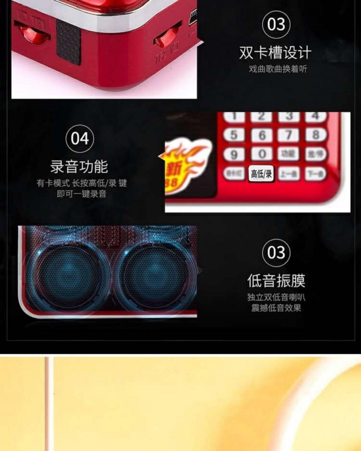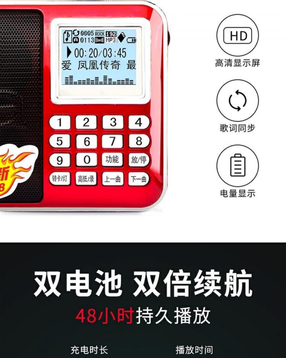 Aihua 888 블루투스 스테레오 라디오 휴대용 스피커 가사 디스플레이 대형 스크린 다기능 카드 플레이어