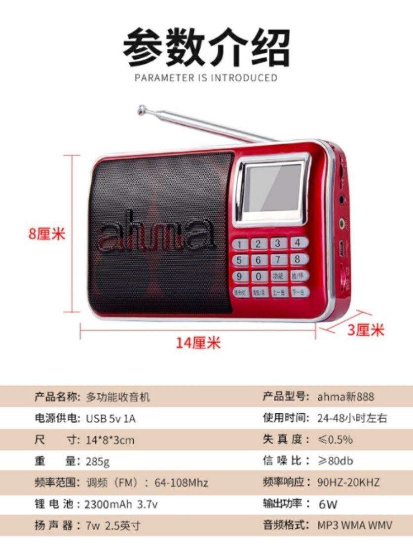Aihua 888 블루투스 스테레오 라디오 휴대용 스피커 가사 디스플레이 대형 스크린 다기능 카드 플레이어스토어 가기