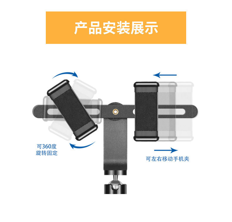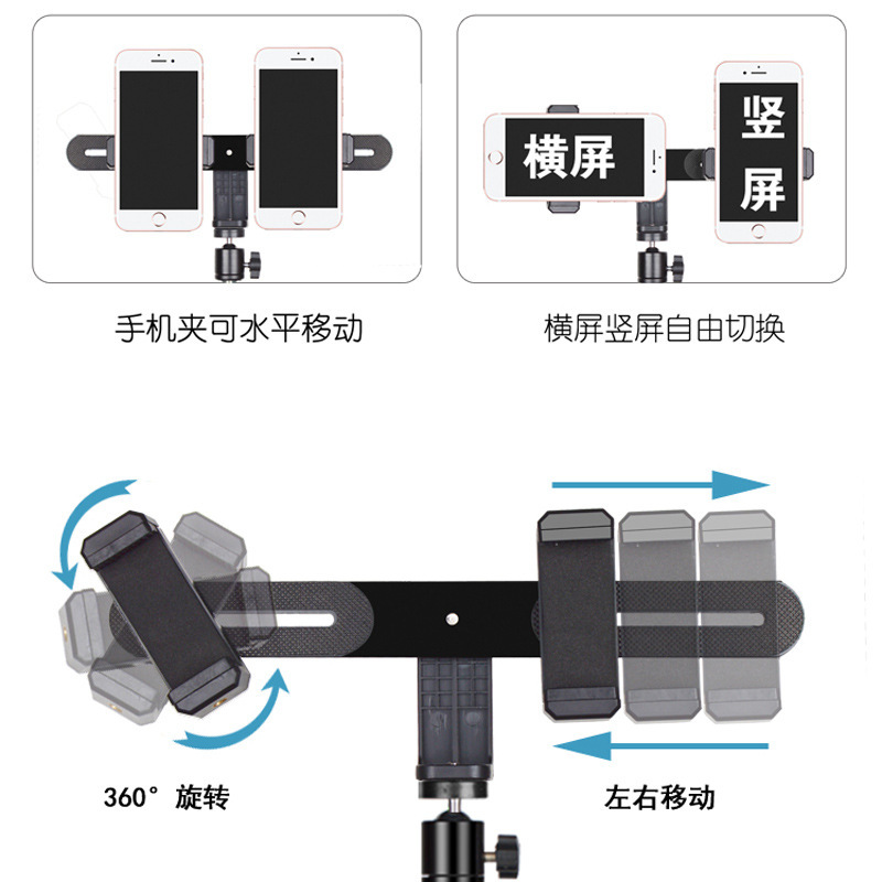 셀카 스틱 볼 헤드 휴대 전화 클립 휴대 전화 브래킷 라이브 방송 랙 클라우드 액세서리 플랫폼 삼각대 더블 머신 클립 회전 가능스토어 가기