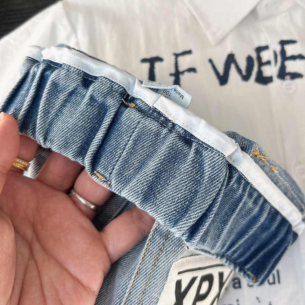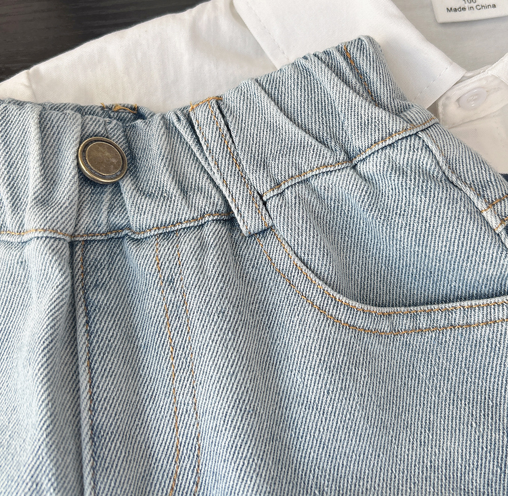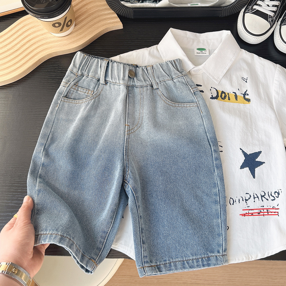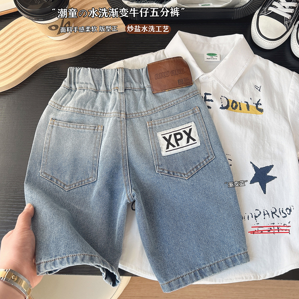 2025 새로운 여름 아동복 소년 어린이 튀김 소금 반 샌드 블라스팅 세탁 데님 바지 바지 도매스토어 가기