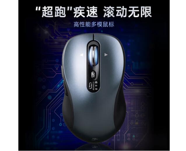 SANWA SUPPLY山业无线蓝牙双模鼠标 快速滚轮鼠标 4向滚轮 Win/Mac切换 充电式 金属灰 2.4G+蓝牙
