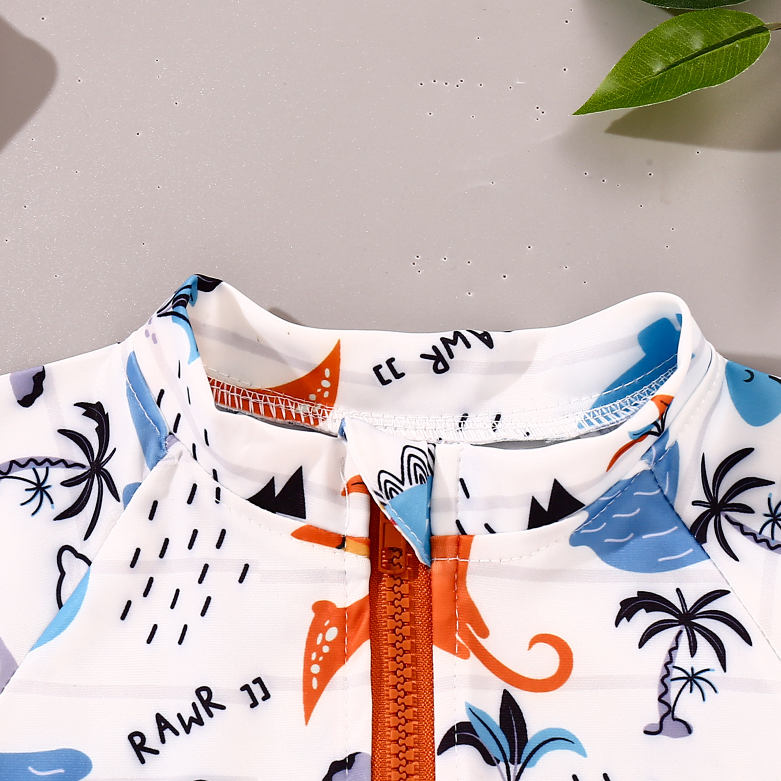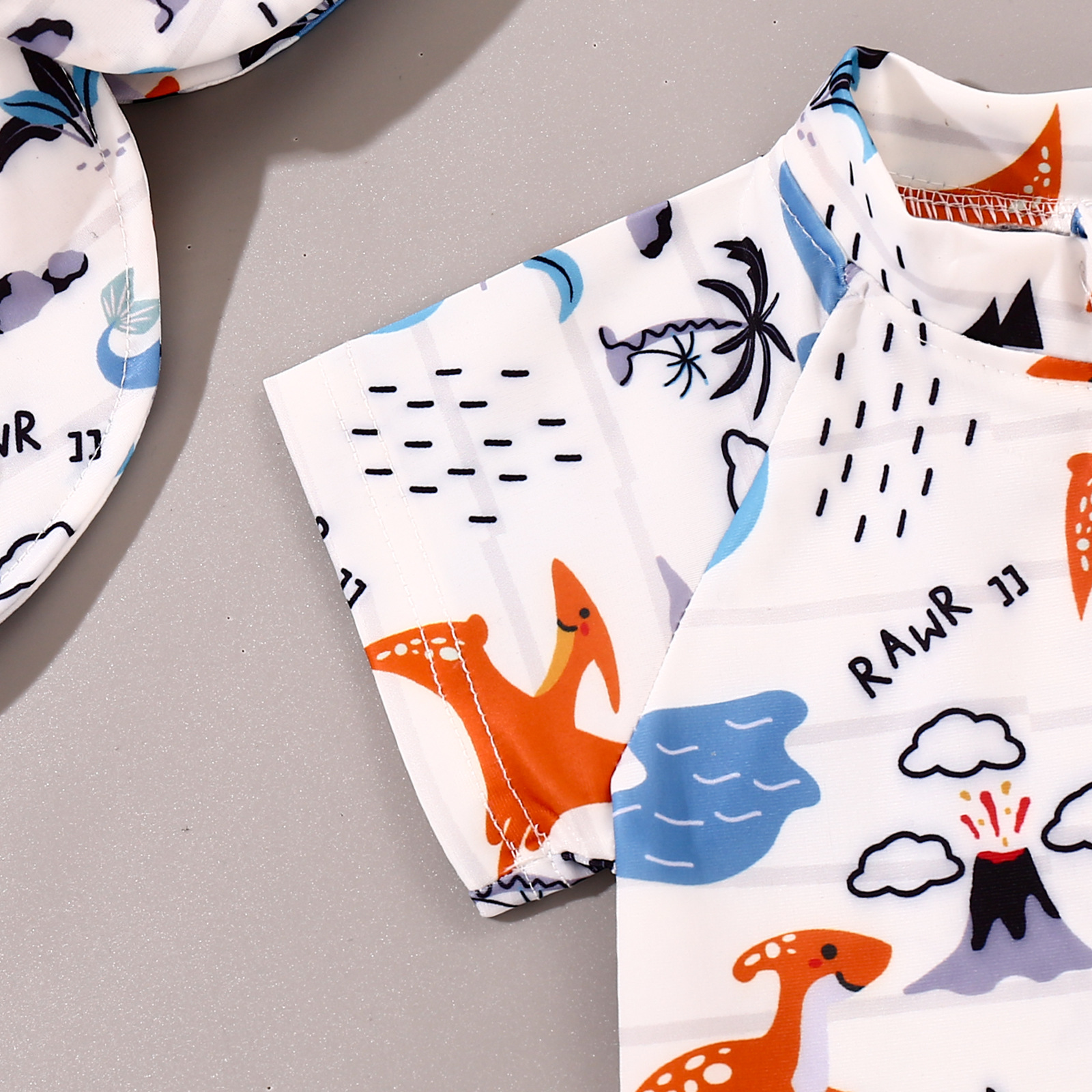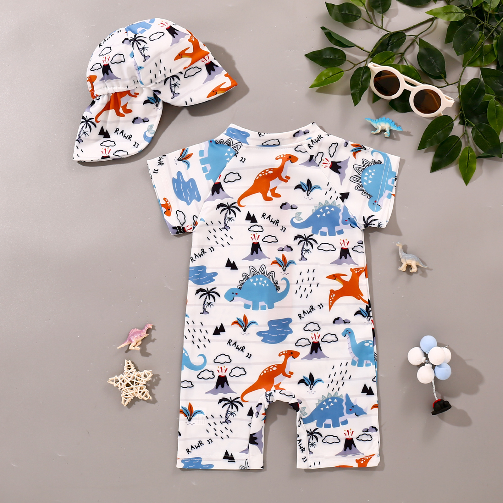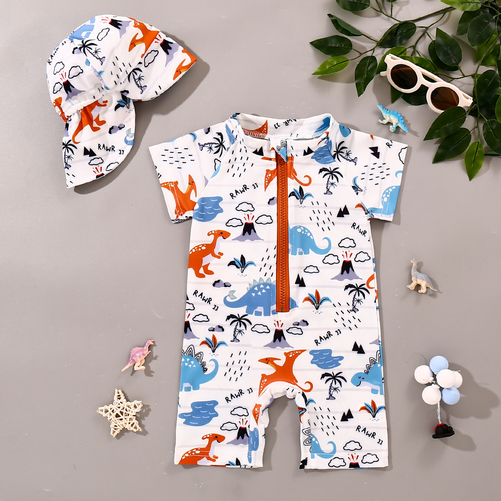 어린이 의류 수영 세트 짧은 소매 만화 패턴 전체 인쇄 지퍼 어린이 수영복 수영 모자