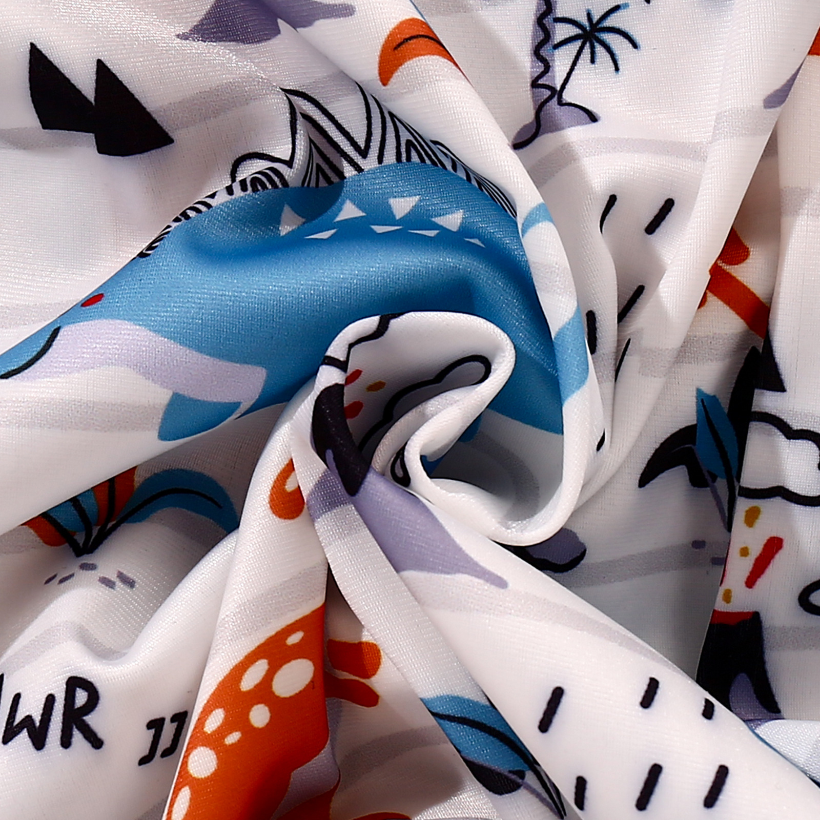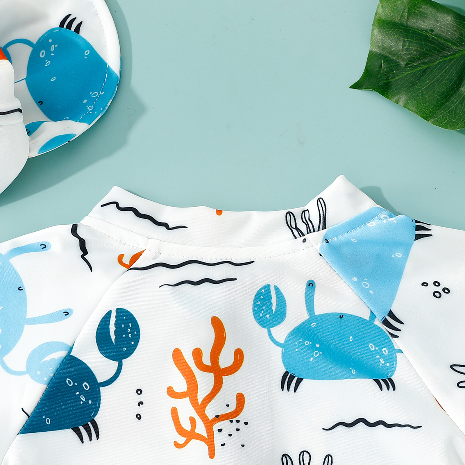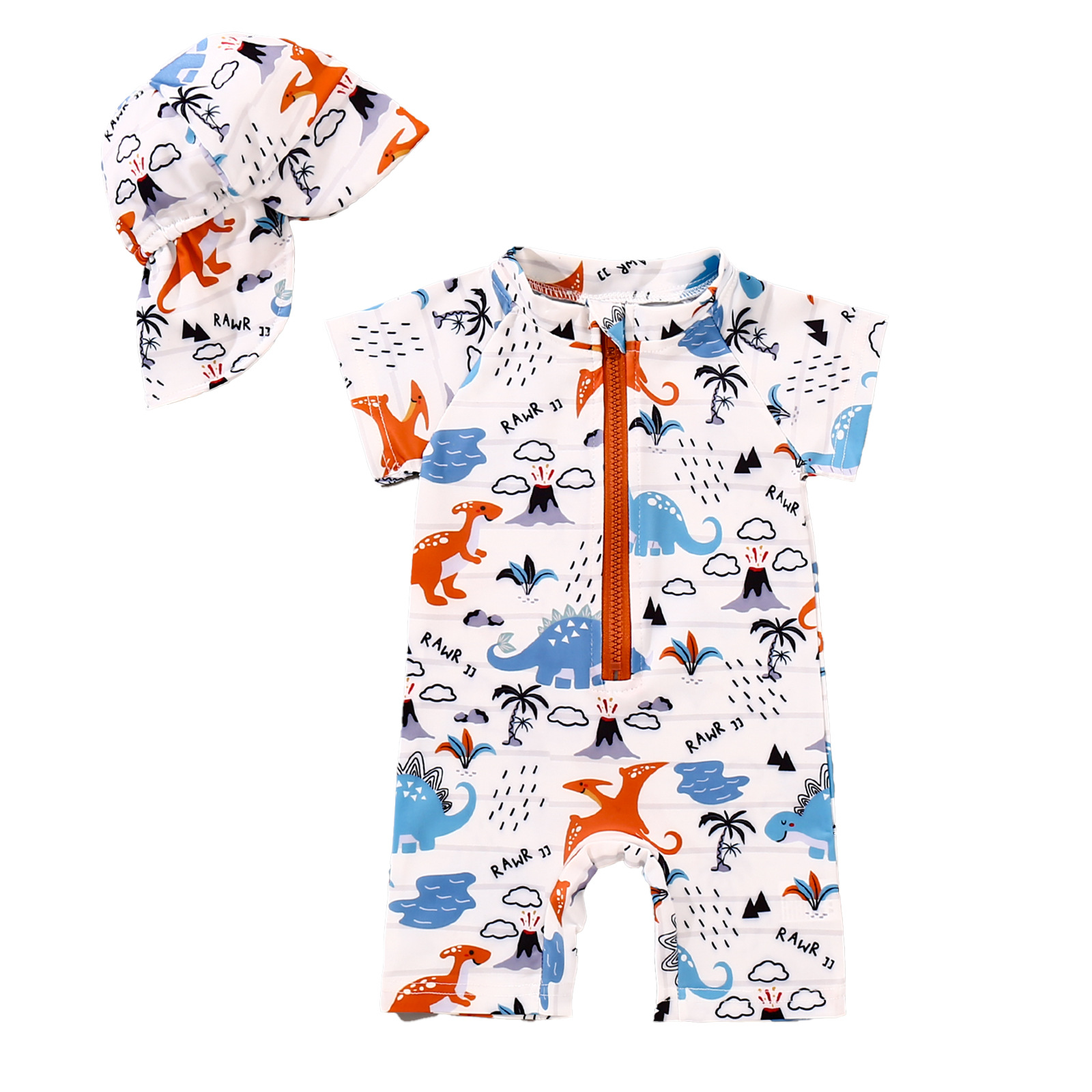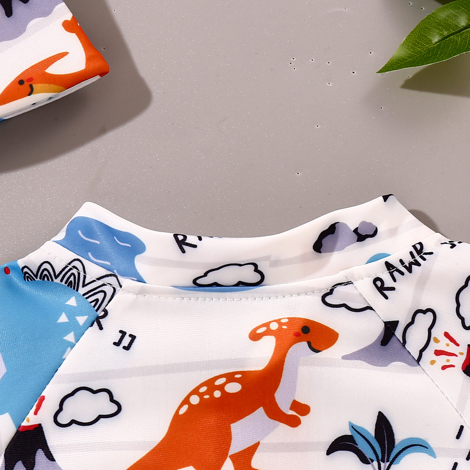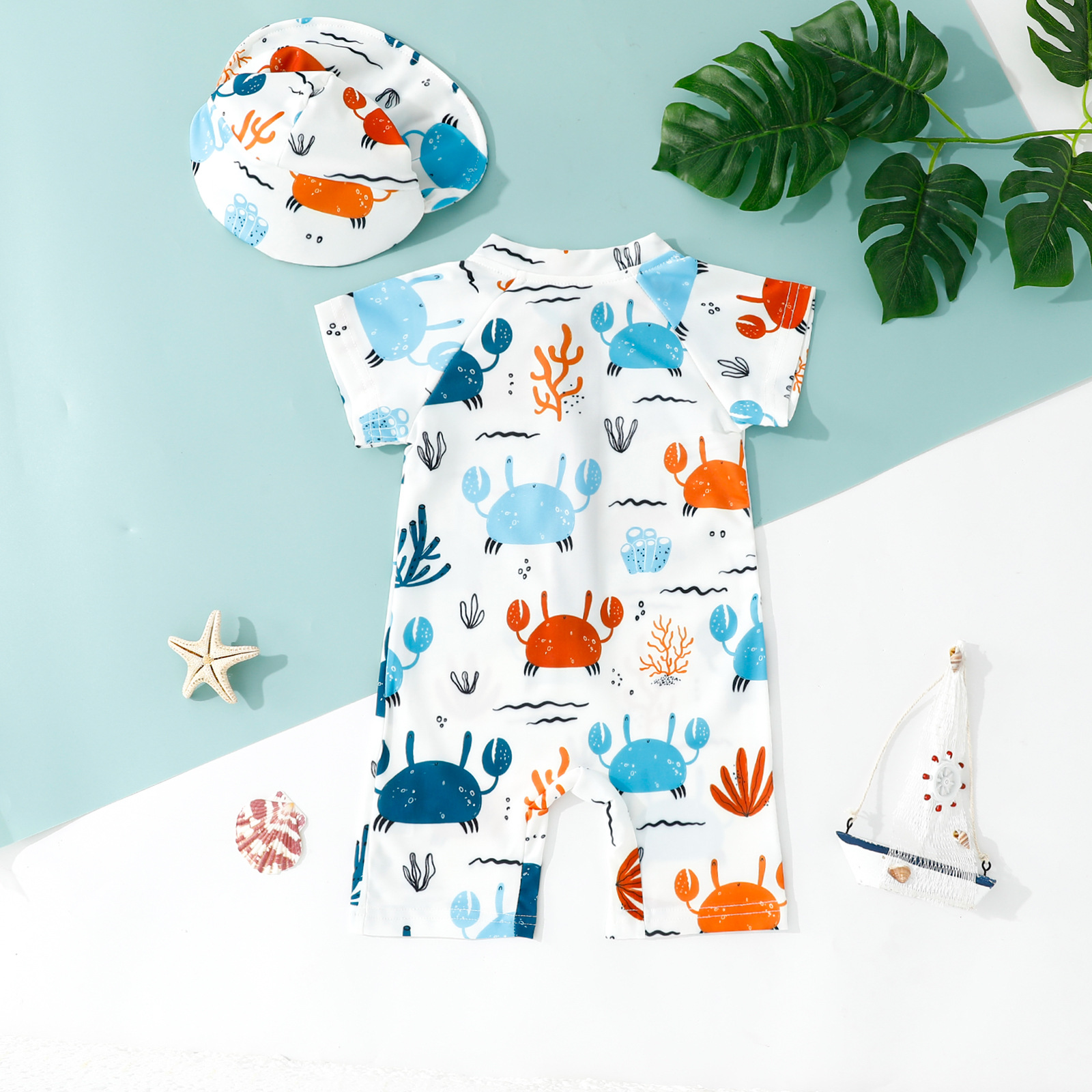 어린이 의류 수영 세트 짧은 소매 만화 패턴 전체 인쇄 지퍼 어린이 수영복 수영 모자
