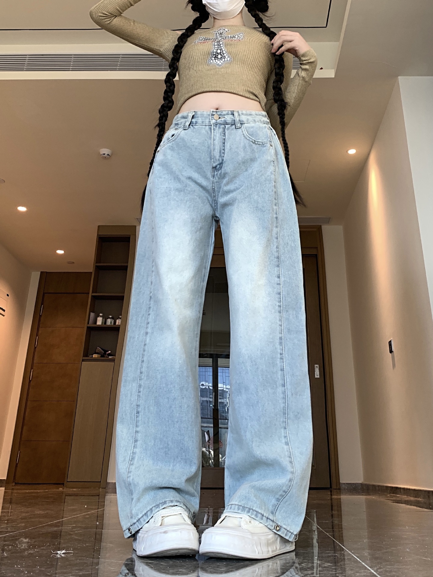 2025 년 초 봄 새 디자인 감각 느슨한 엉덩이 커버 슬리밍 올매치 스트레이트 롱 팬츠 여성을위한 한국식 하이 허리 청바지스토어 가기