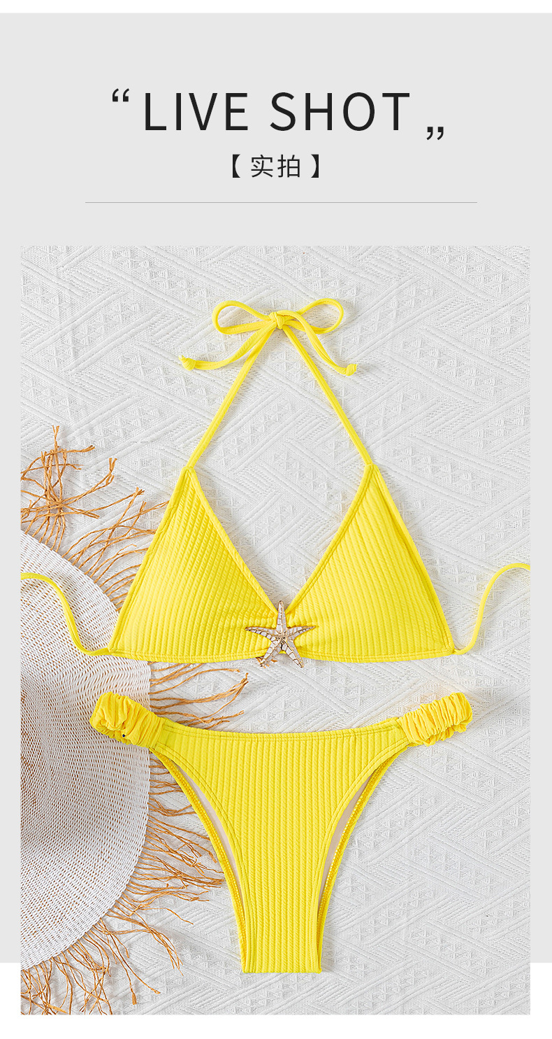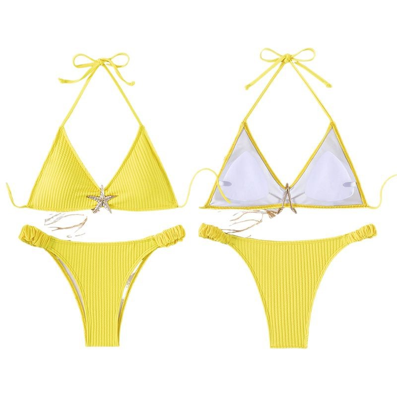 2025 유럽과 미국의 단색 목 수영복 여성용 비치 섹시 핏 스트라이프 비키니 알리익스프레스 삼각형 분할 수영복