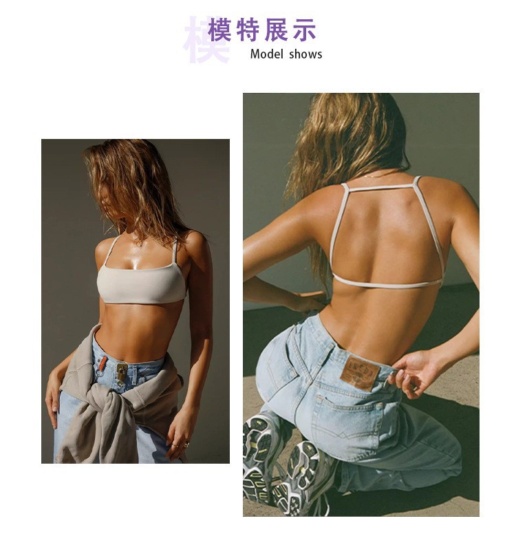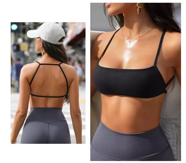 가슴 패드가 있는 여성을 위한 새로운 크로스보더 아름다운 등 요가 브라, 가슴이 드러나는 스포츠 브라, 충격 방지 피트니스 필라테스