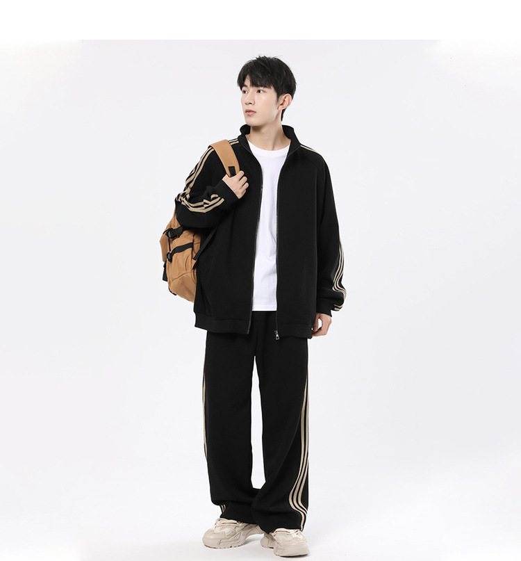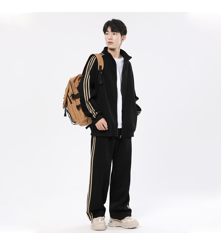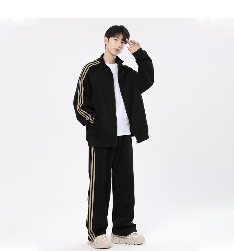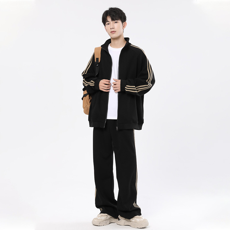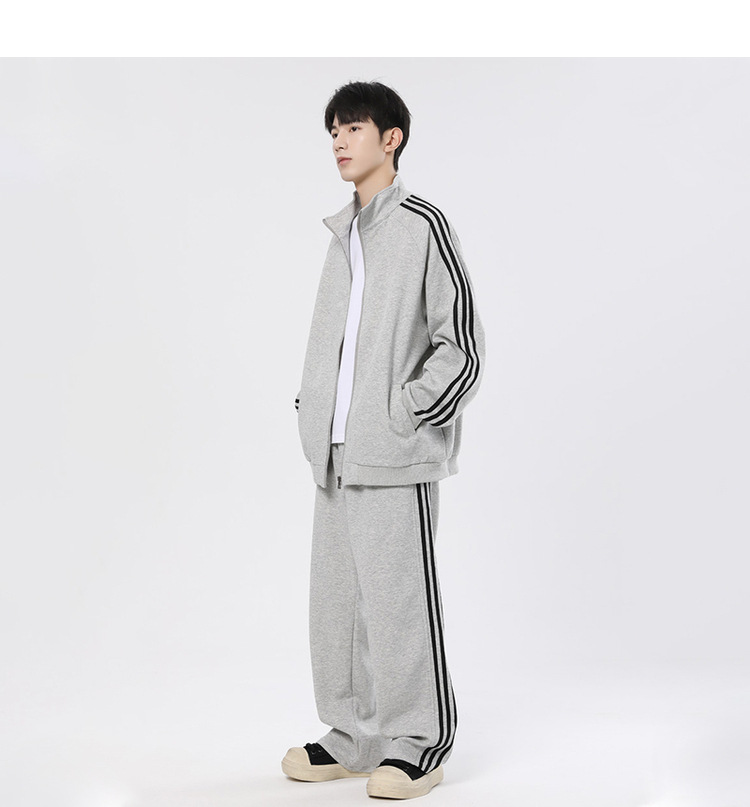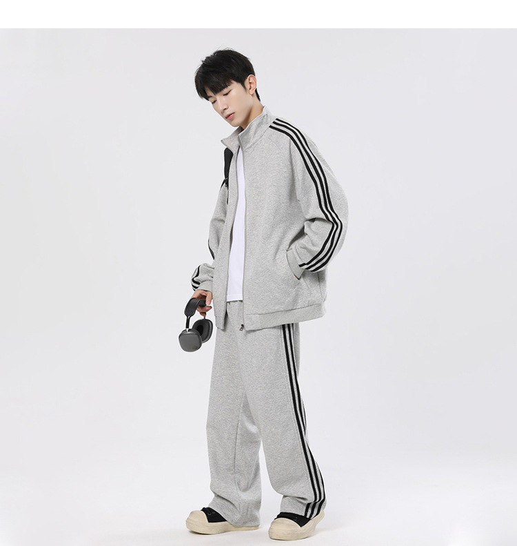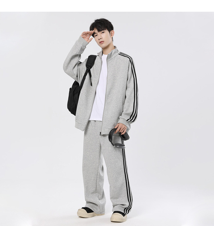 Jian Heng 3 바 느슨한 캐주얼 스포츠 세트 남성 패션 스웨트 셔츠 재킷 스웨트 셔츠 바지 최고 바지 운동복 여성스토어 가기