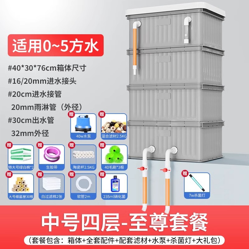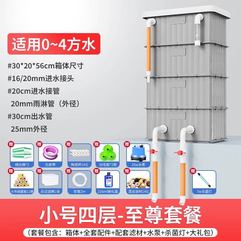 • 중형 4단 슈프림 패키지 [고효율 필터재 + 워터펌프 + 무료 살균램프]