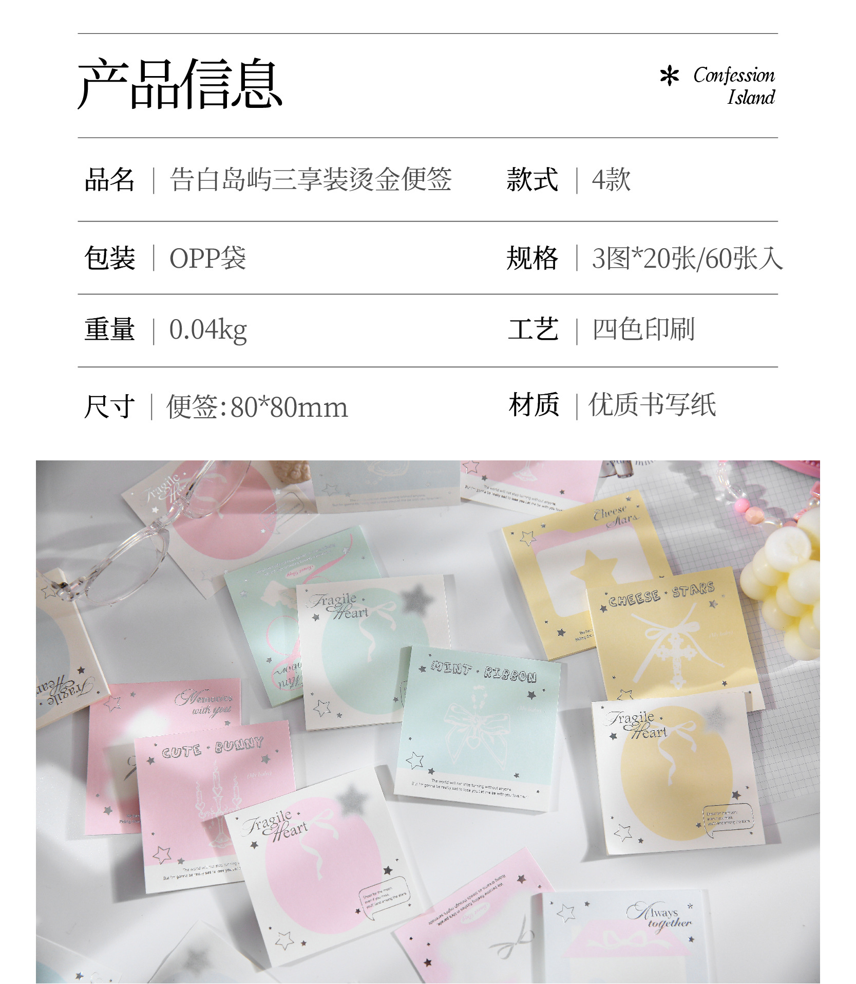 3 팩 노트 전체 청동 고백 섬 시리즈 한국 귀여운 손 계정 자료 학생 메시지 메모 용지
