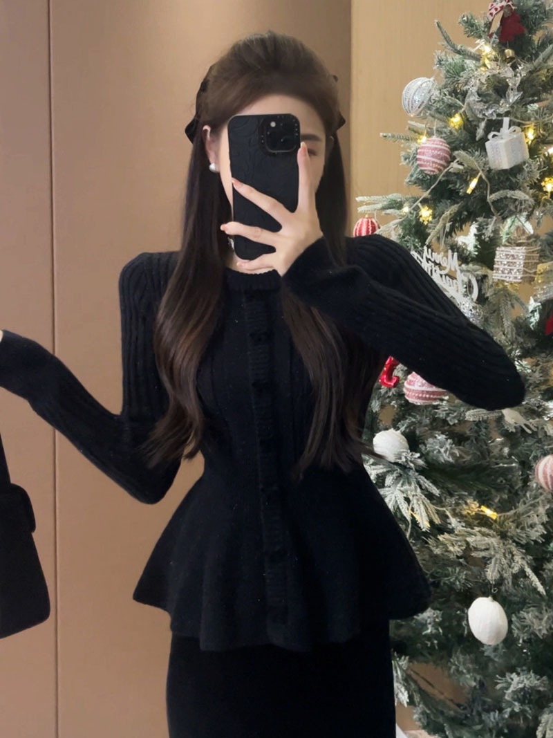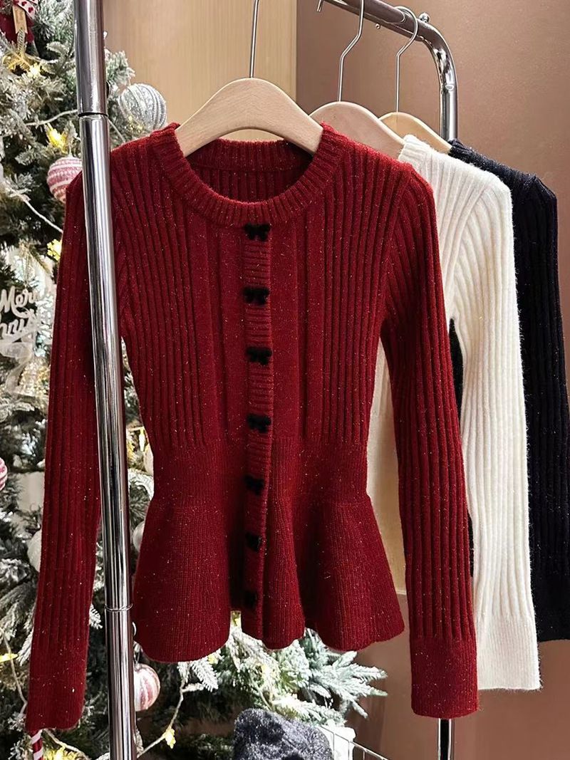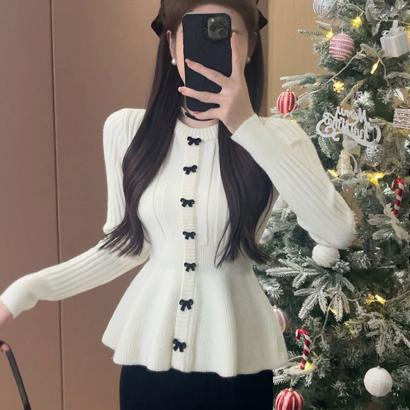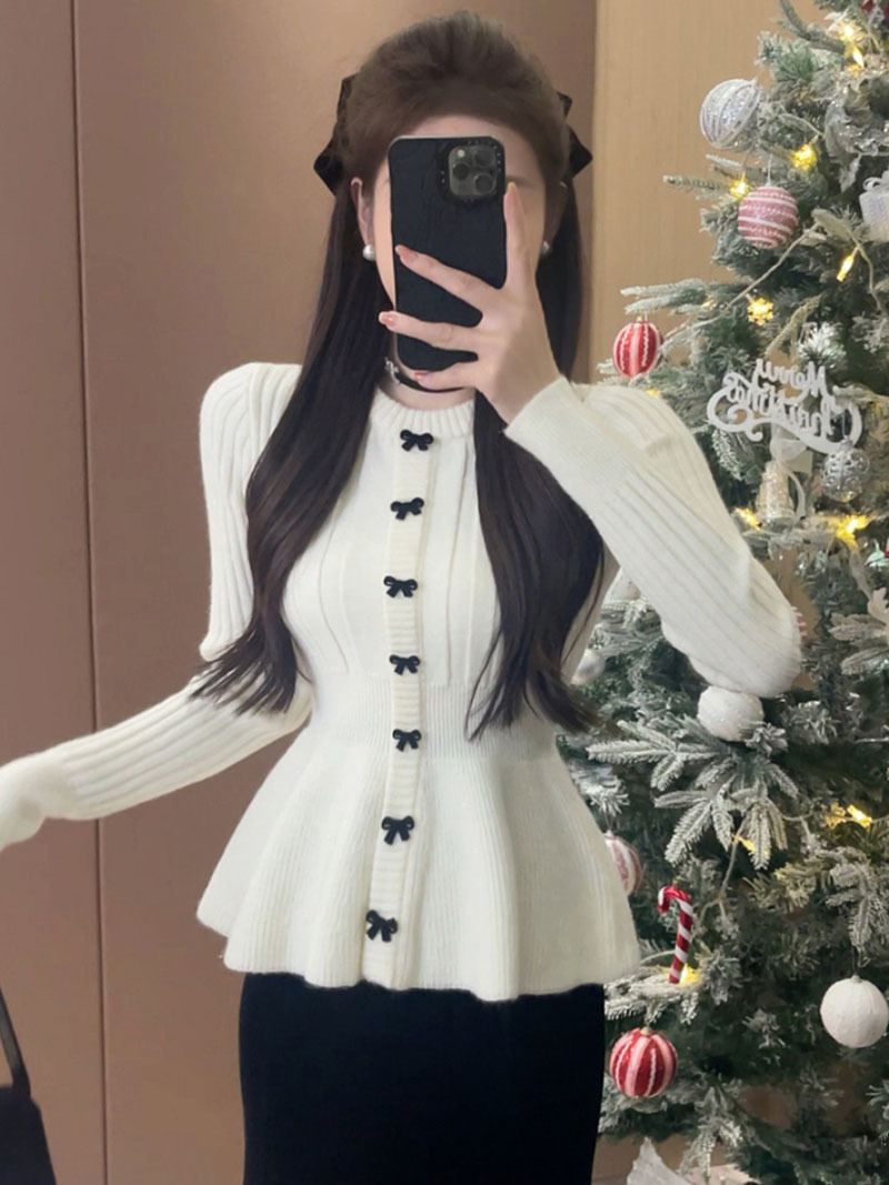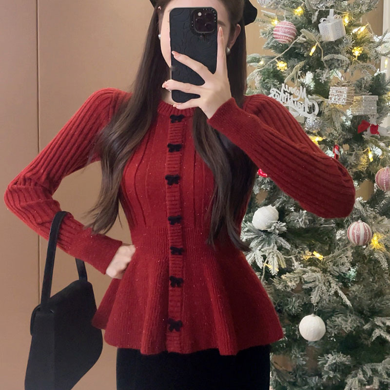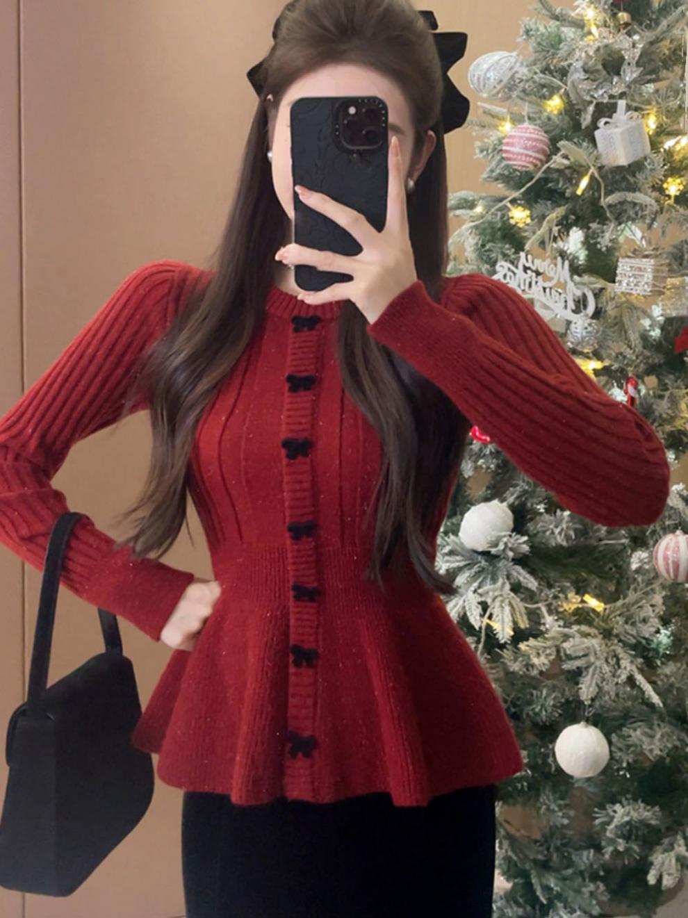 긴팔 풀오버 스웨터 가을과 겨울 새로운 허리 슬리밍 내베이스 셔츠 빨간 활 작은 향기로운 스타일 스웨터스토어 가기