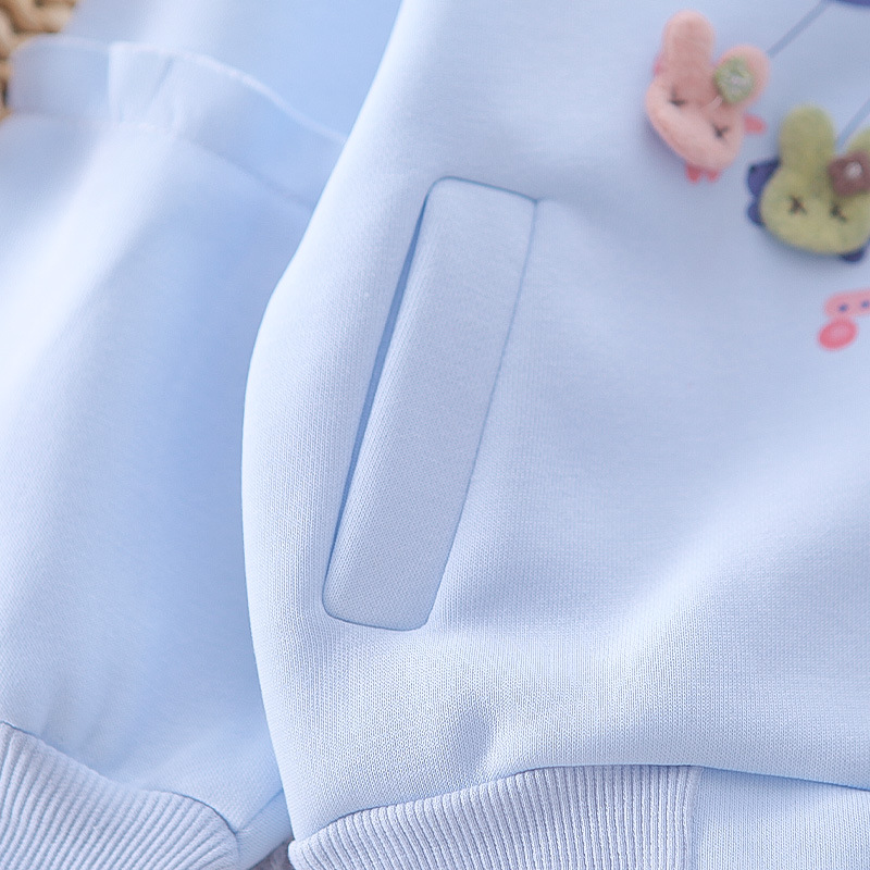 2025 소녀 대외 무역 세트 봄과 가을 새로운 3 차원 4 개의 토끼 머리 지퍼 긴 소매 패션 3 피스 세트 조수