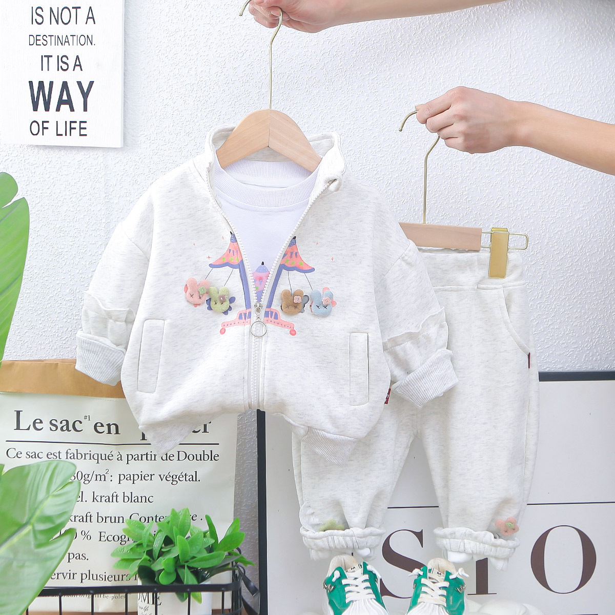 2025 소녀 대외 무역 세트 봄과 가을 새로운 3 차원 4 개의 토끼 머리 지퍼 긴 소매 패션 3 피스 세트 조수스토어 가기