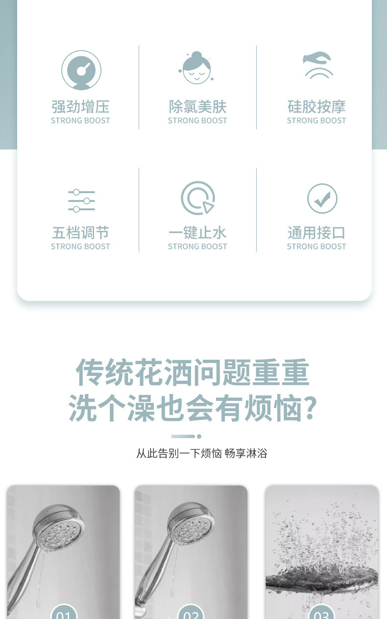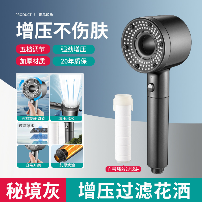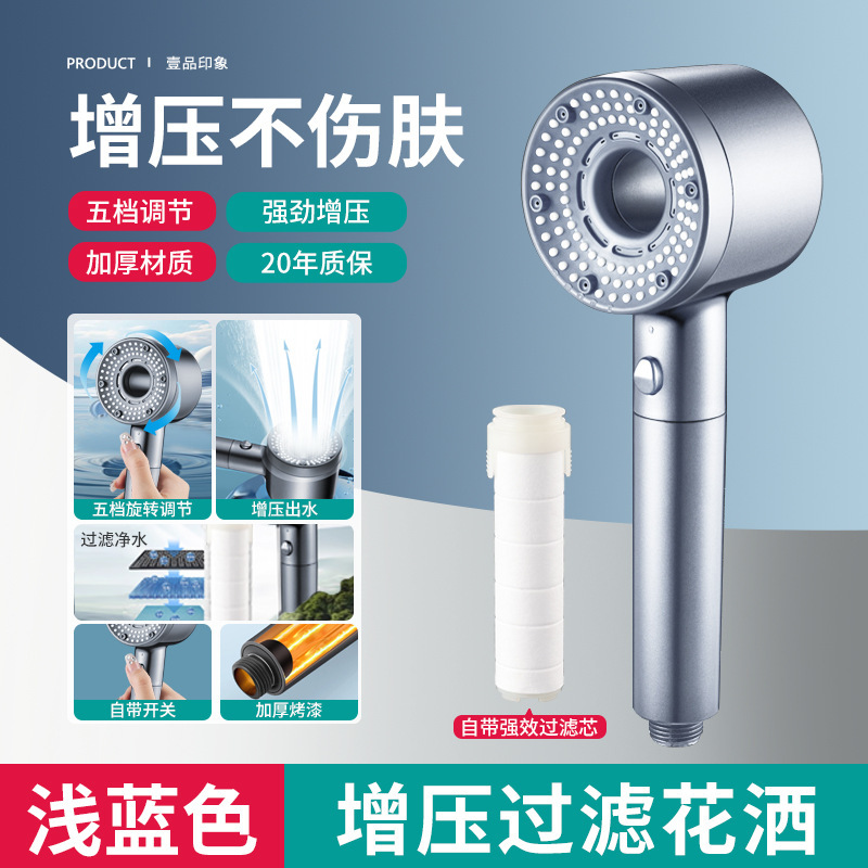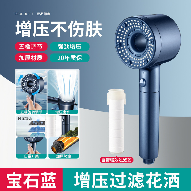 국경 간 5 블록 그물 빨간 헤어 드라이어 샤워 헤드 원 키 워터 스톱 5 기능 가압 목욕 샤워 헤드 영어 컬러 박스