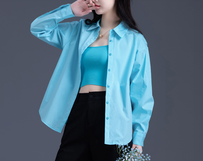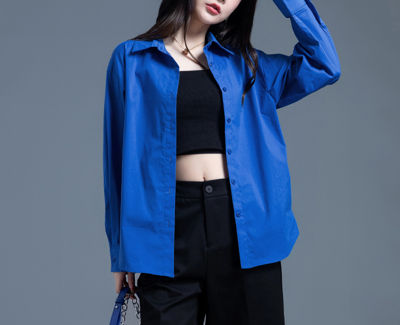 클라인 블루 셔츠 여성용 가을 겨울 디자인 셔츠 패션 캐주얼 재킷