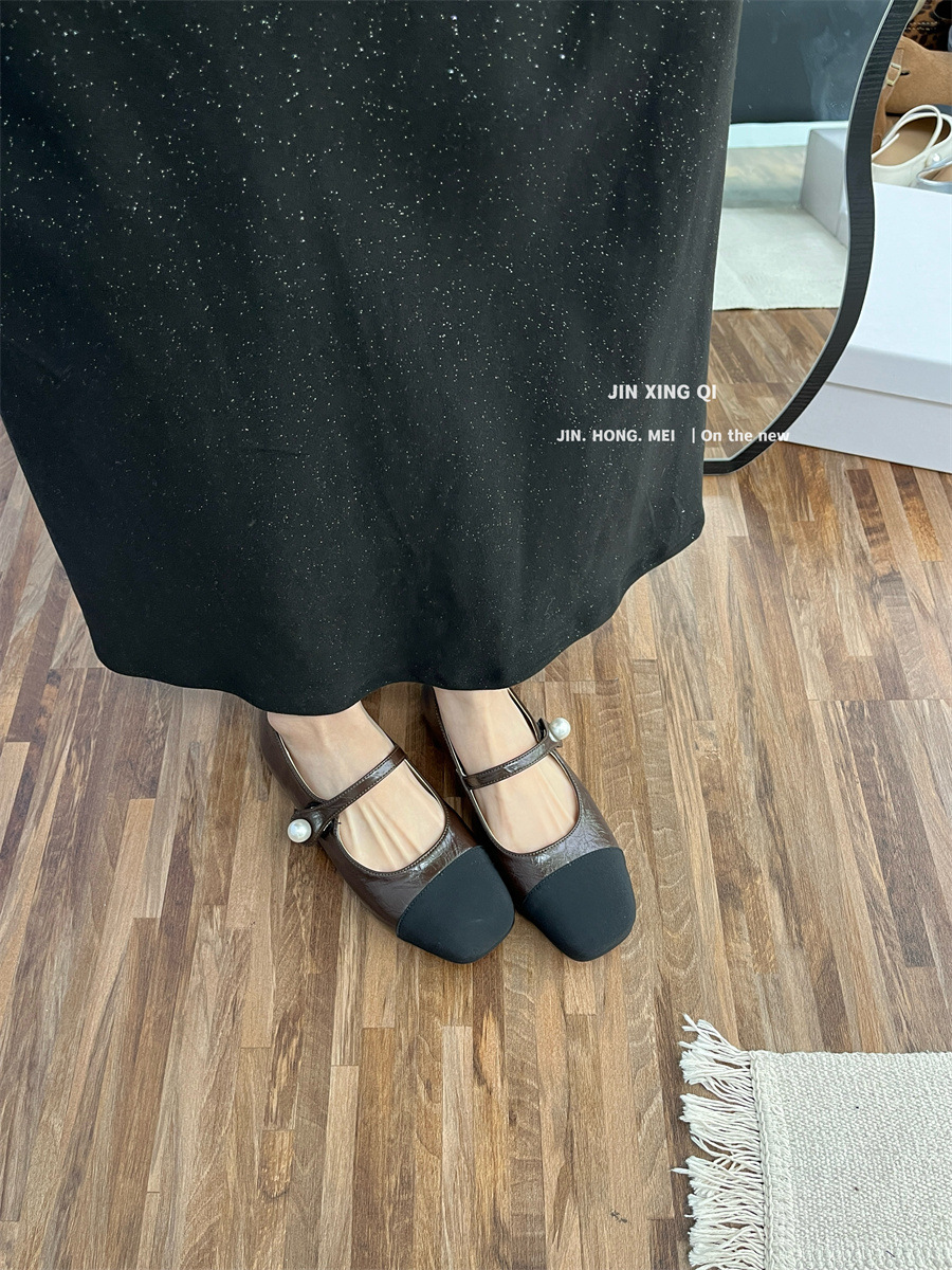 2025 봄과 가을 새로운 패션 레트로 메리 제인 싱글 레이어 신발 여성용 플랫 얕은 광장 발가락 샌들스토어 가기