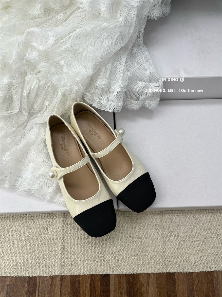 2025 봄과 가을 새로운 패션 레트로 메리 제인 싱글 레이어 신발 여성용 플랫 얕은 광장 발가락 샌들