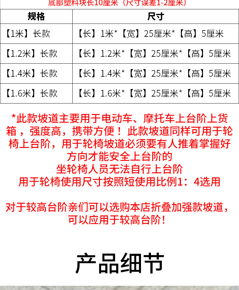 오토바이 휠체어 전기 자동차 적재 계단 계단 램프 보드 장벽없는 램프 보드스토어 가기