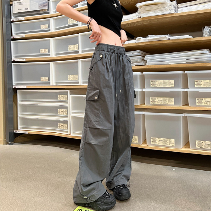 미국식 빠른 건조 작업 바지 여성용 여름 아이스 실크 발목 바지 멀티 포켓 충전 등산 바지 와이드 레그 스포츠 바지 국경