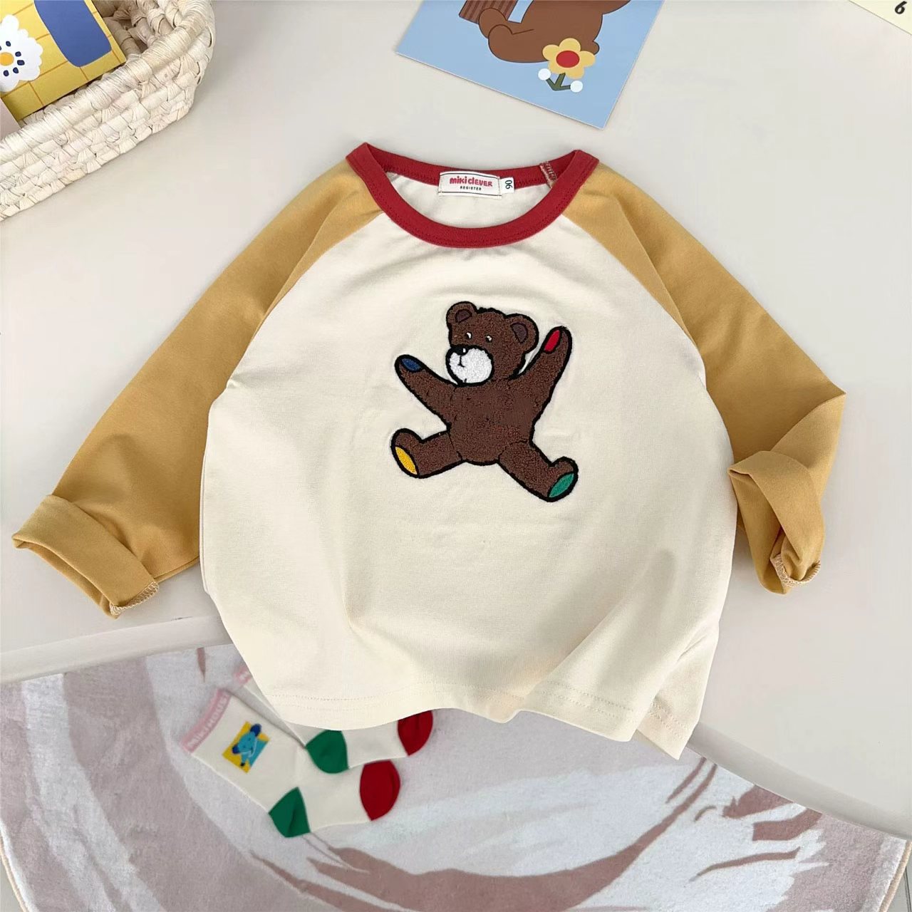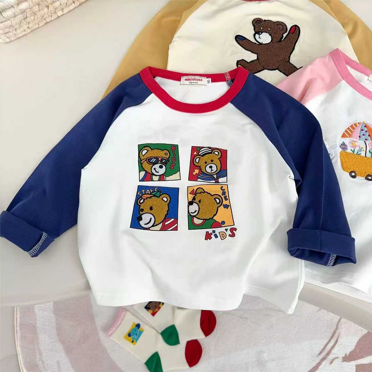 대외 무역 일본 남녀 아동복 멀티 컬러 티셔츠 25 봄 새 수건 자수 만화 테디 베어 리글리 긴 소매 5070스토어 가기