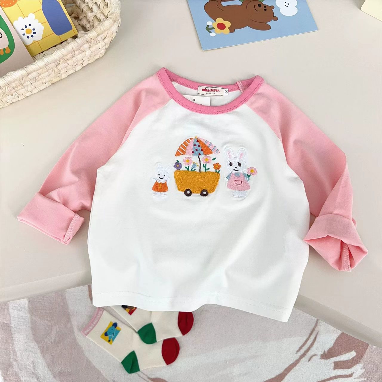 대외 무역 일본 남녀 아동복 멀티 컬러 티셔츠 25 봄 새 수건 자수 만화 테디 베어 리글리 긴 소매 5070