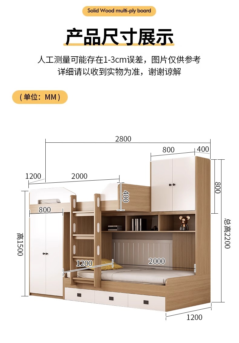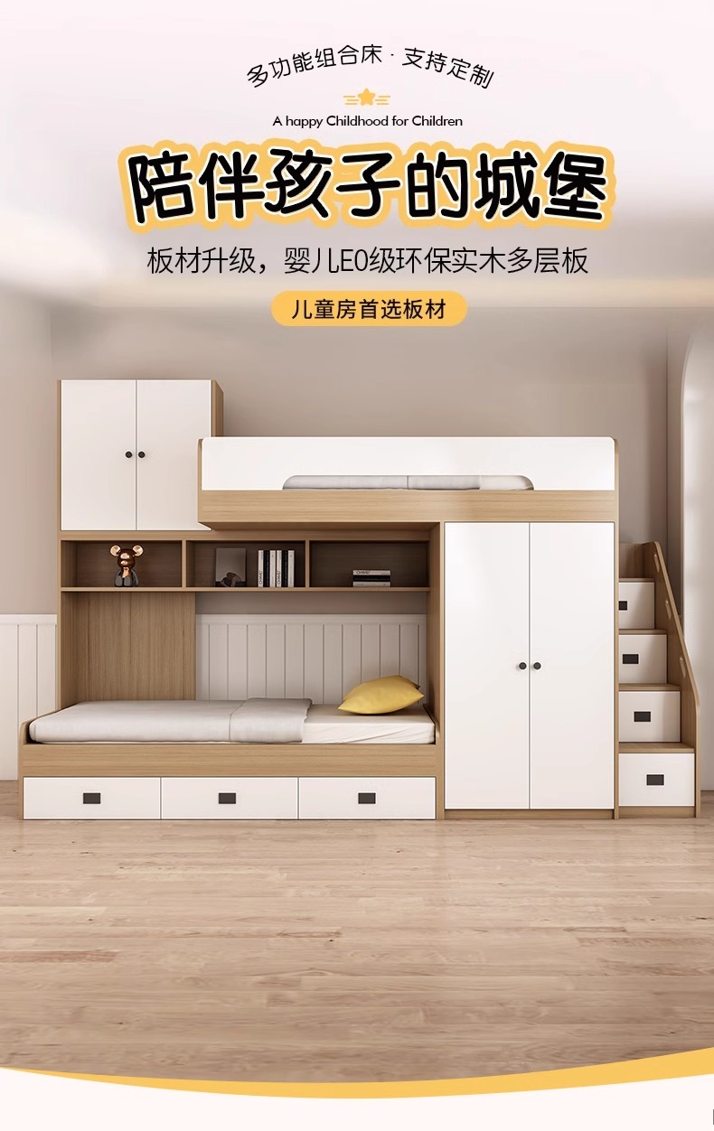 M * 상부 및 하부 침대는 옷장 형 상부 및 하부 침대가있는 전체 집 이중 탈구 형 침대에 설정할 수 있습니다.