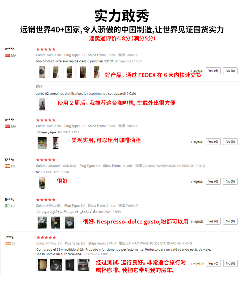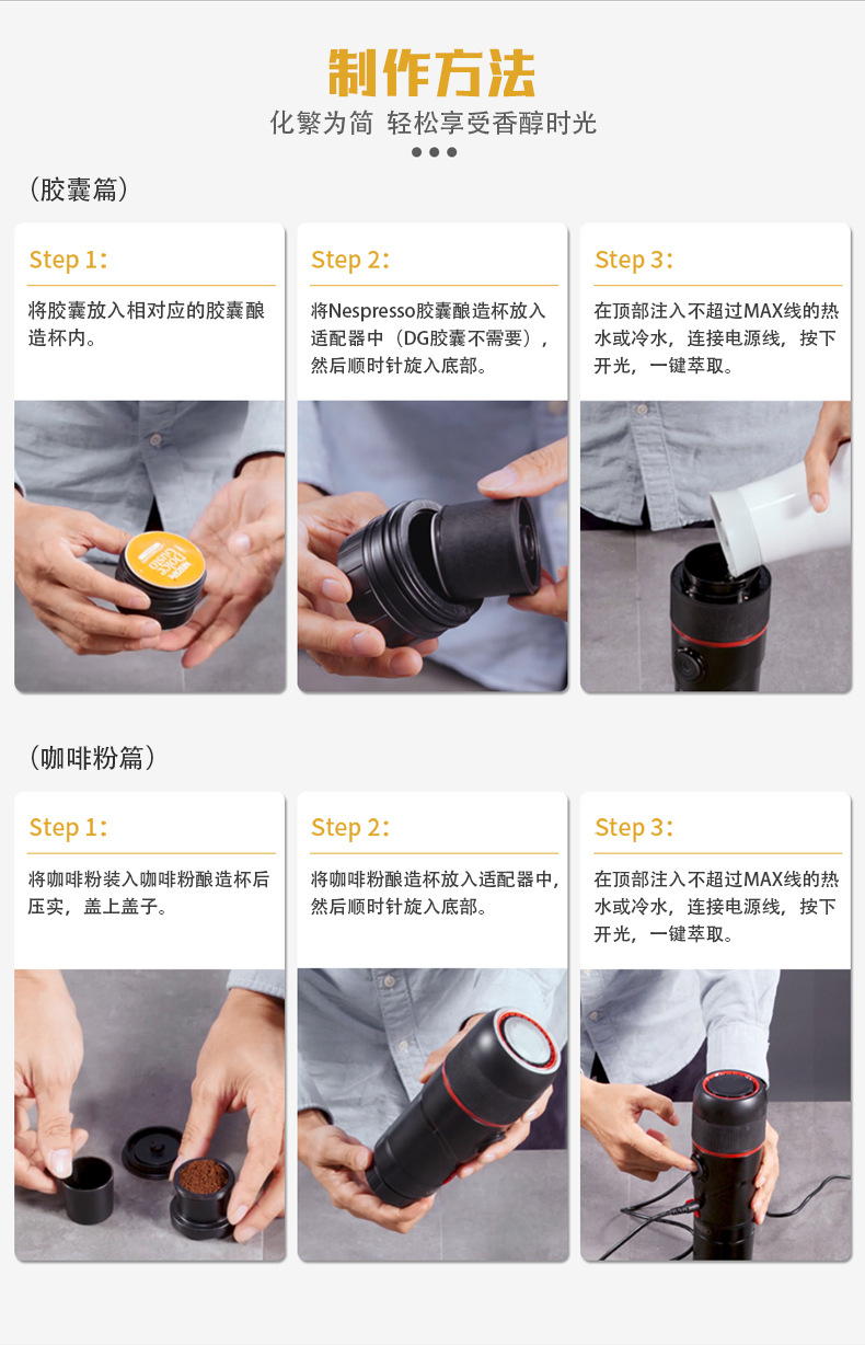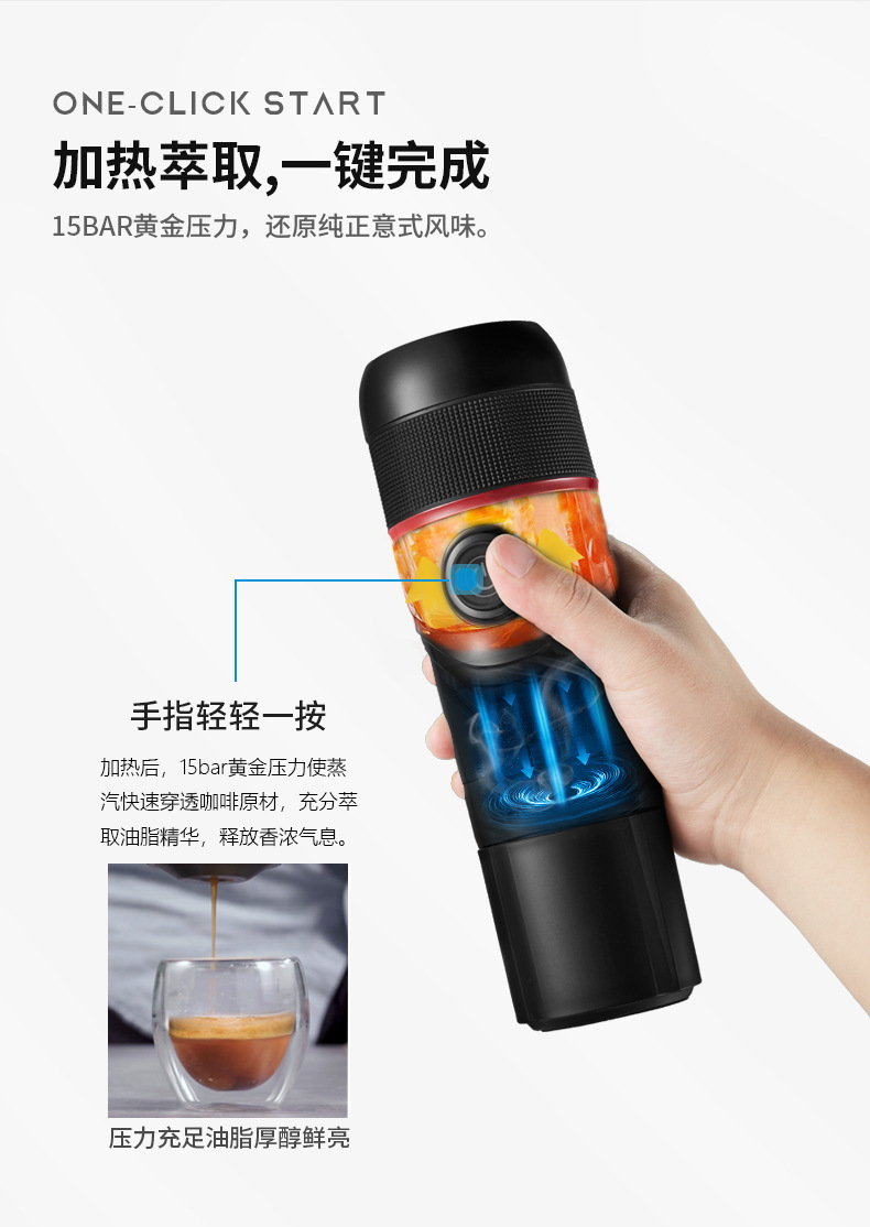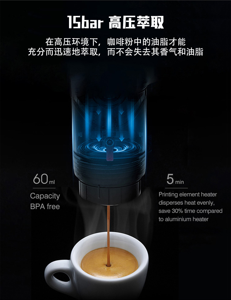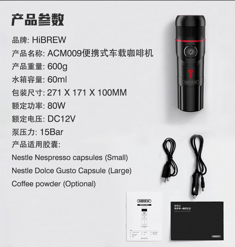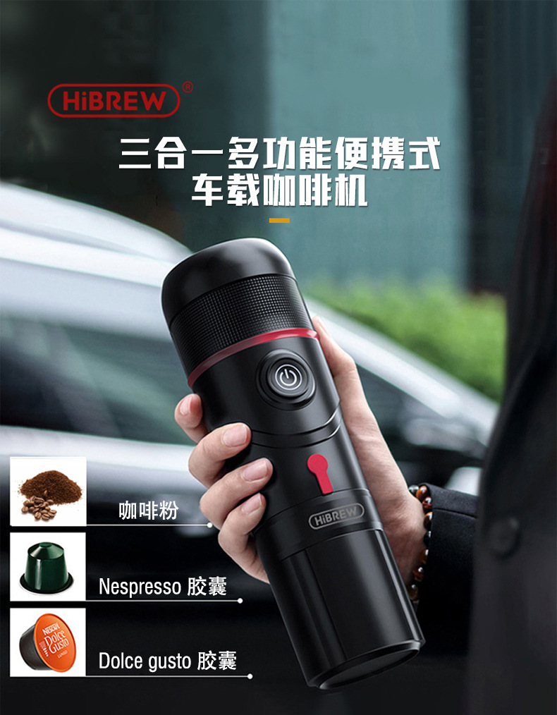 HiBREW 휴대용 야외 에스프레소 커피 머신 여행 휴대용 전기 홈 오피스 커피 파우더 캡슐 이중 목적스토어 가기