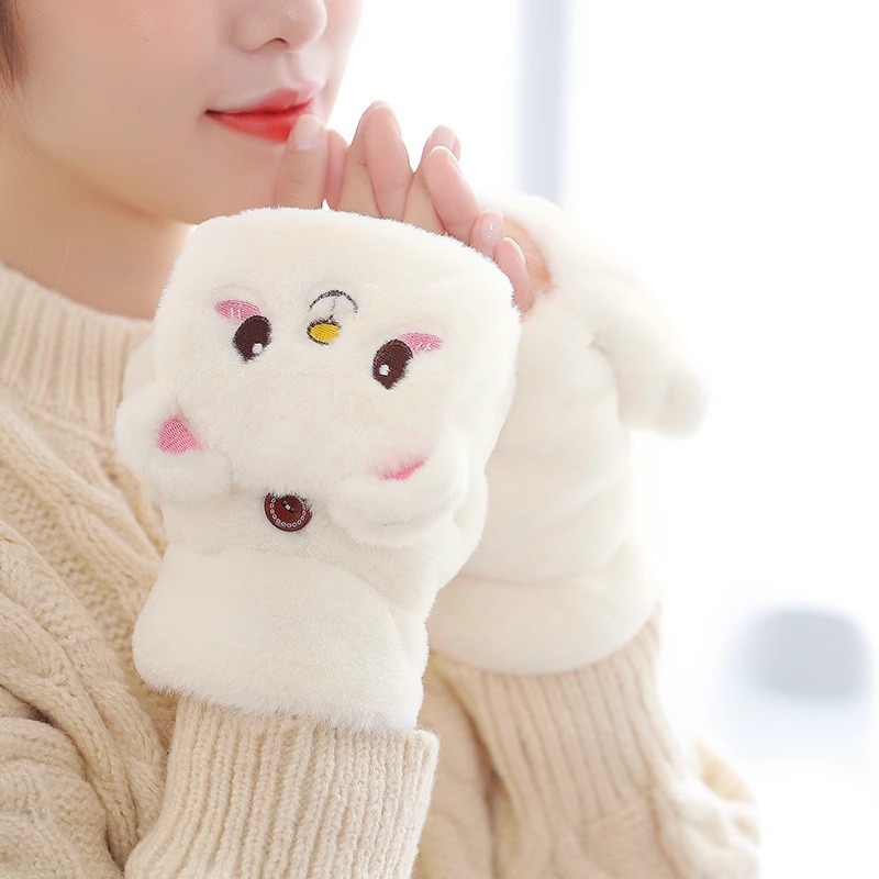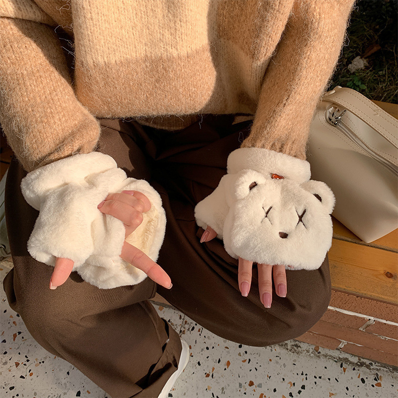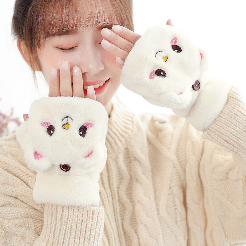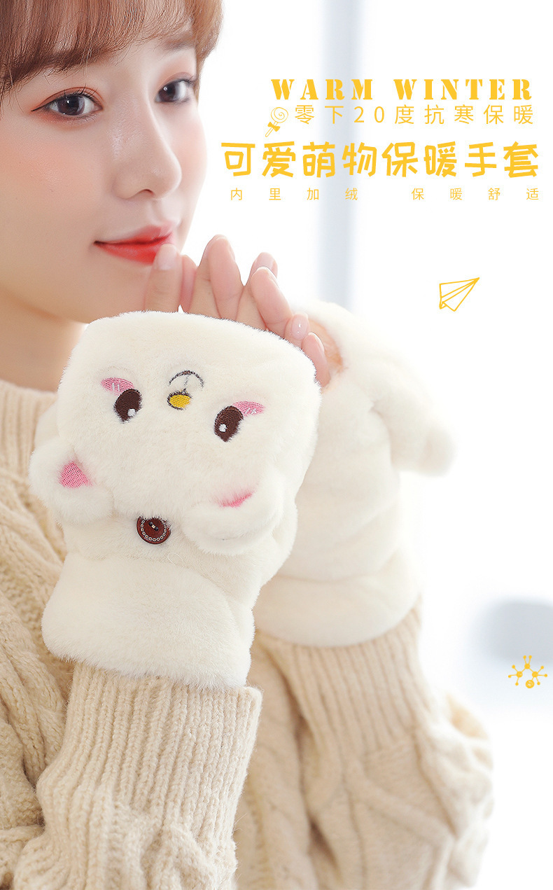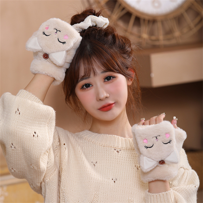 장갑 여자의 가을과 겨울 귀여운 승마 한국 스타일 만화 기모 두꺼운 학생 쓰기 플립 커버 장갑 따뜻한 목 교수형