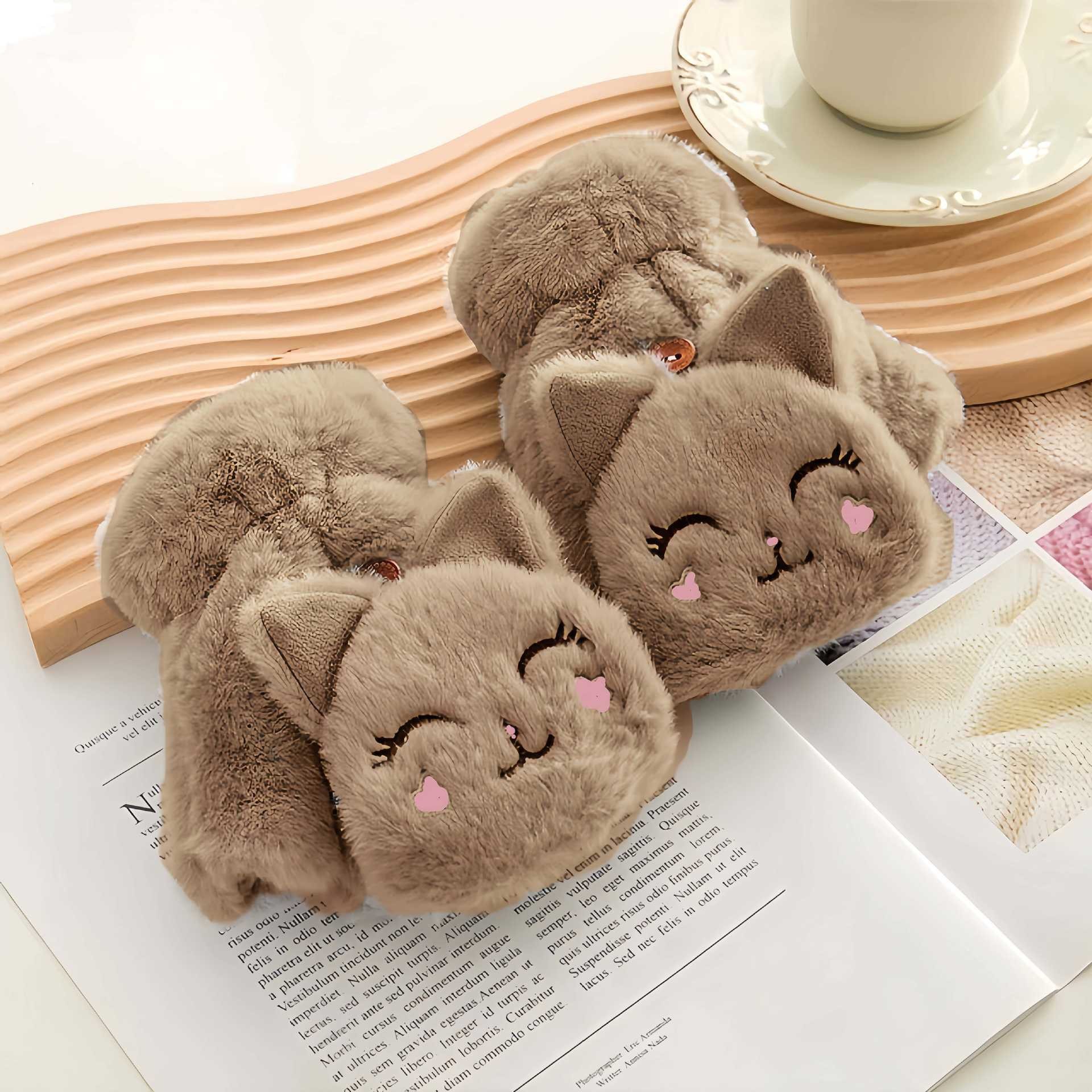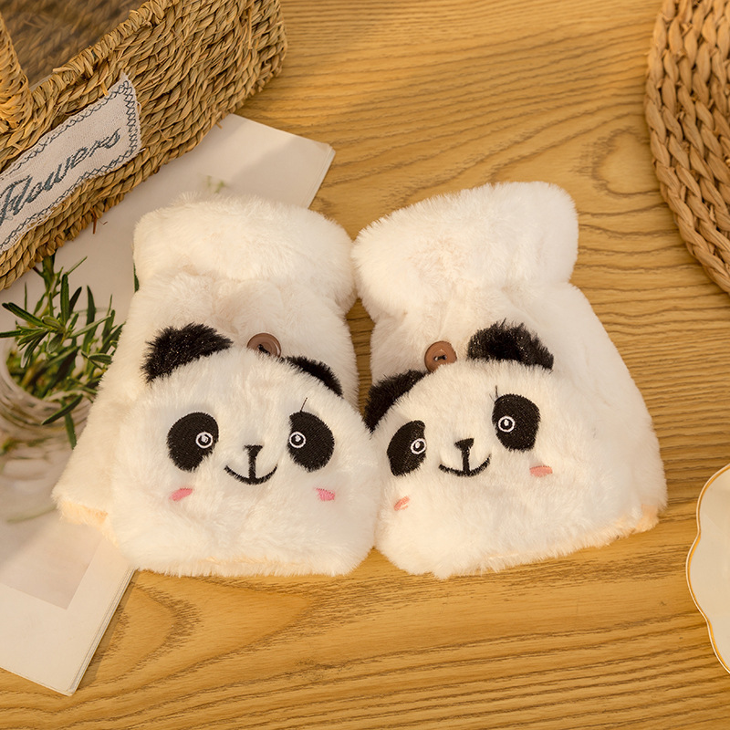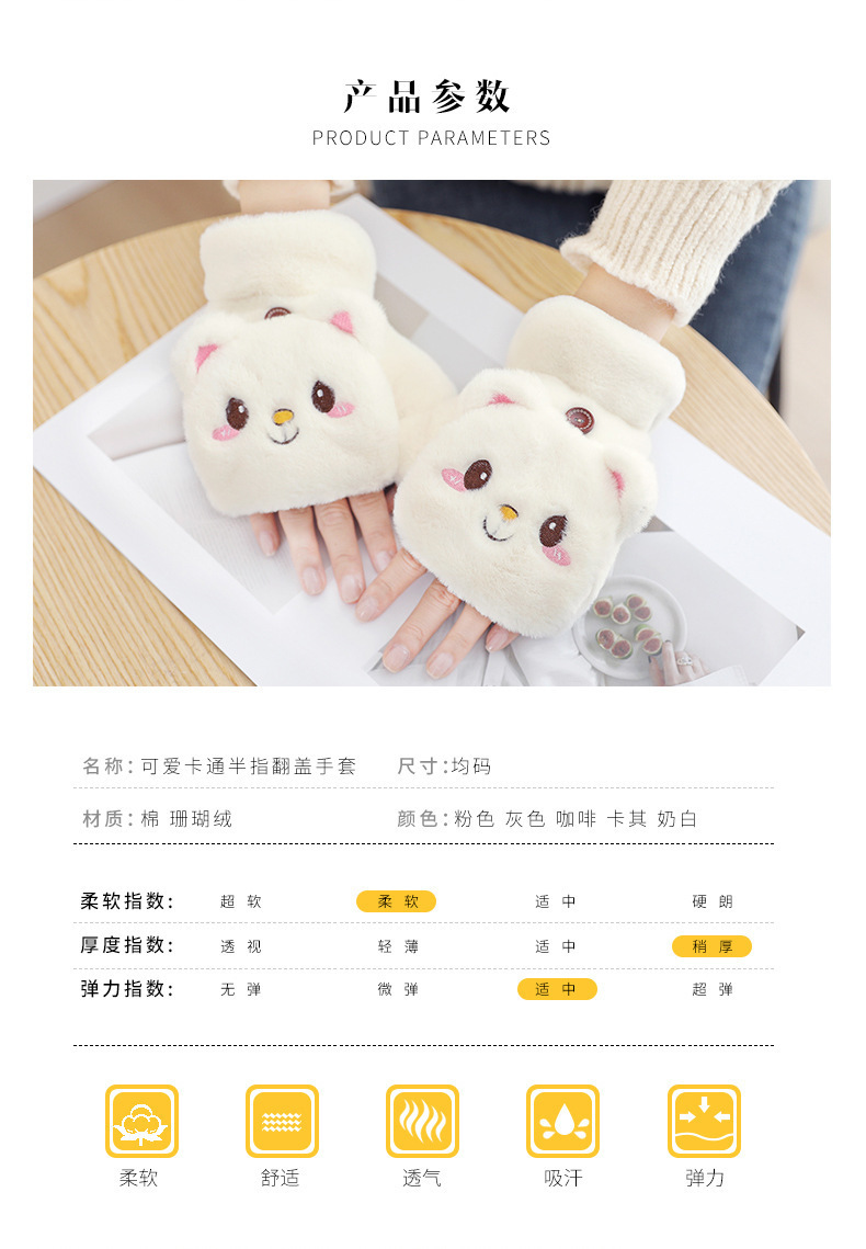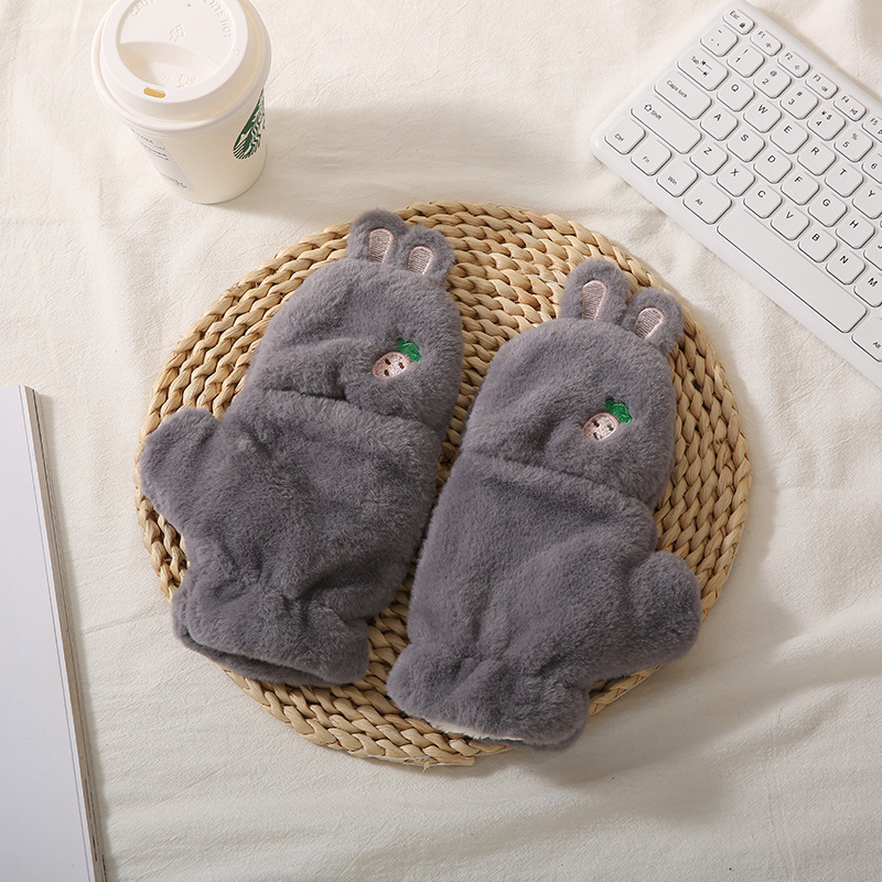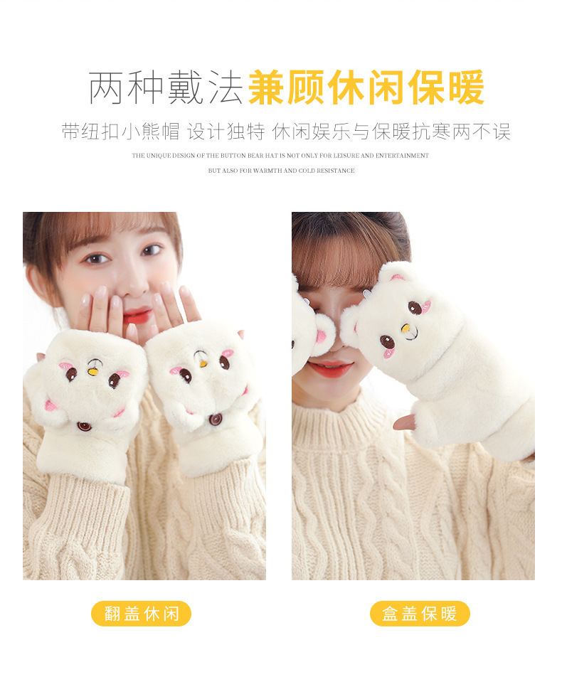 장갑 여자의 가을과 겨울 귀여운 승마 한국 스타일 만화 기모 두꺼운 학생 쓰기 플립 커버 장갑 따뜻한 목 교수형