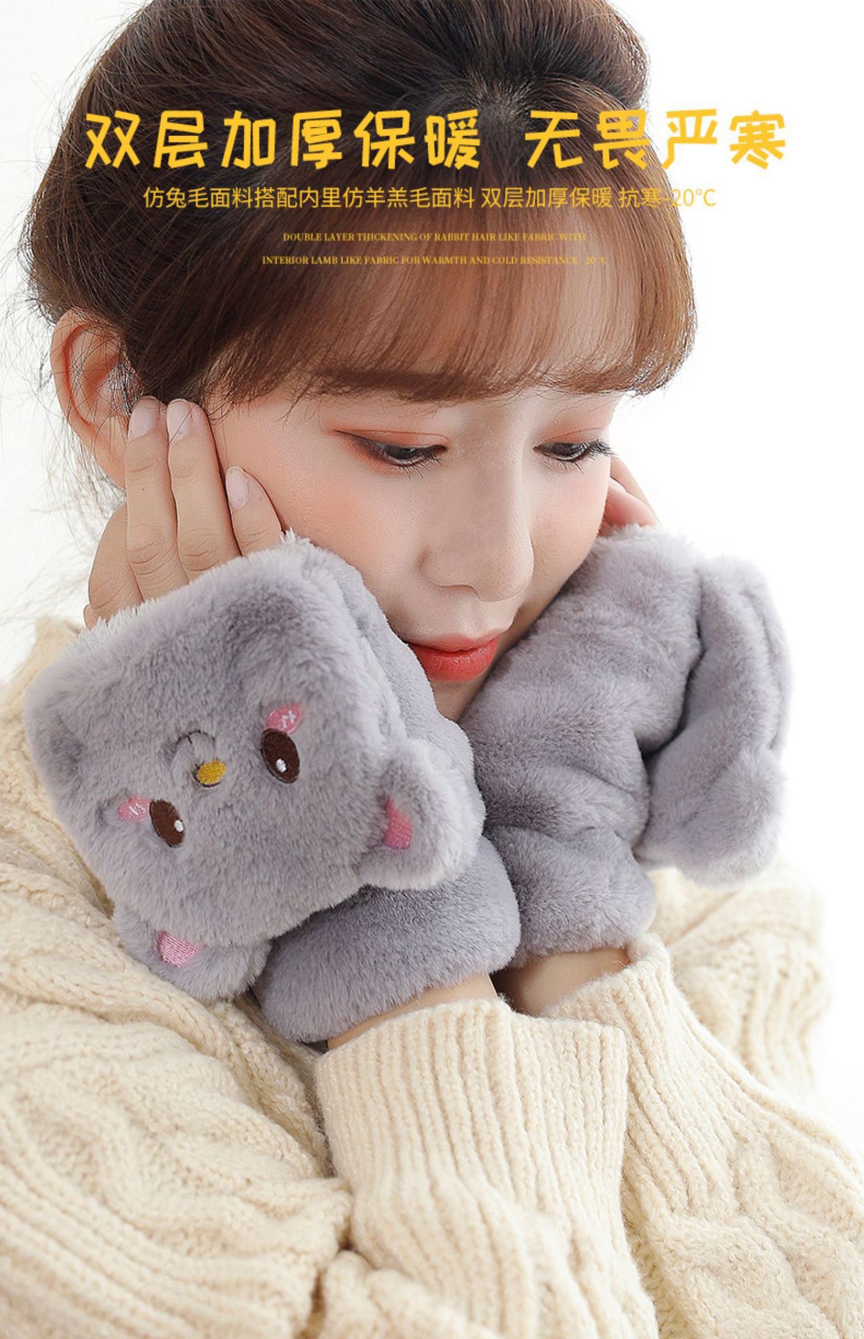 장갑 여자의 가을과 겨울 귀여운 승마 한국 스타일 만화 기모 두꺼운 학생 쓰기 플립 커버 장갑 따뜻한 목 교수형스토어 가기