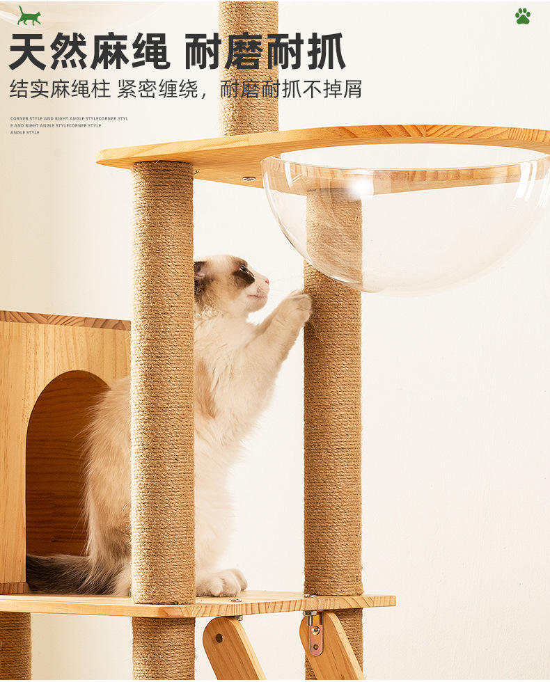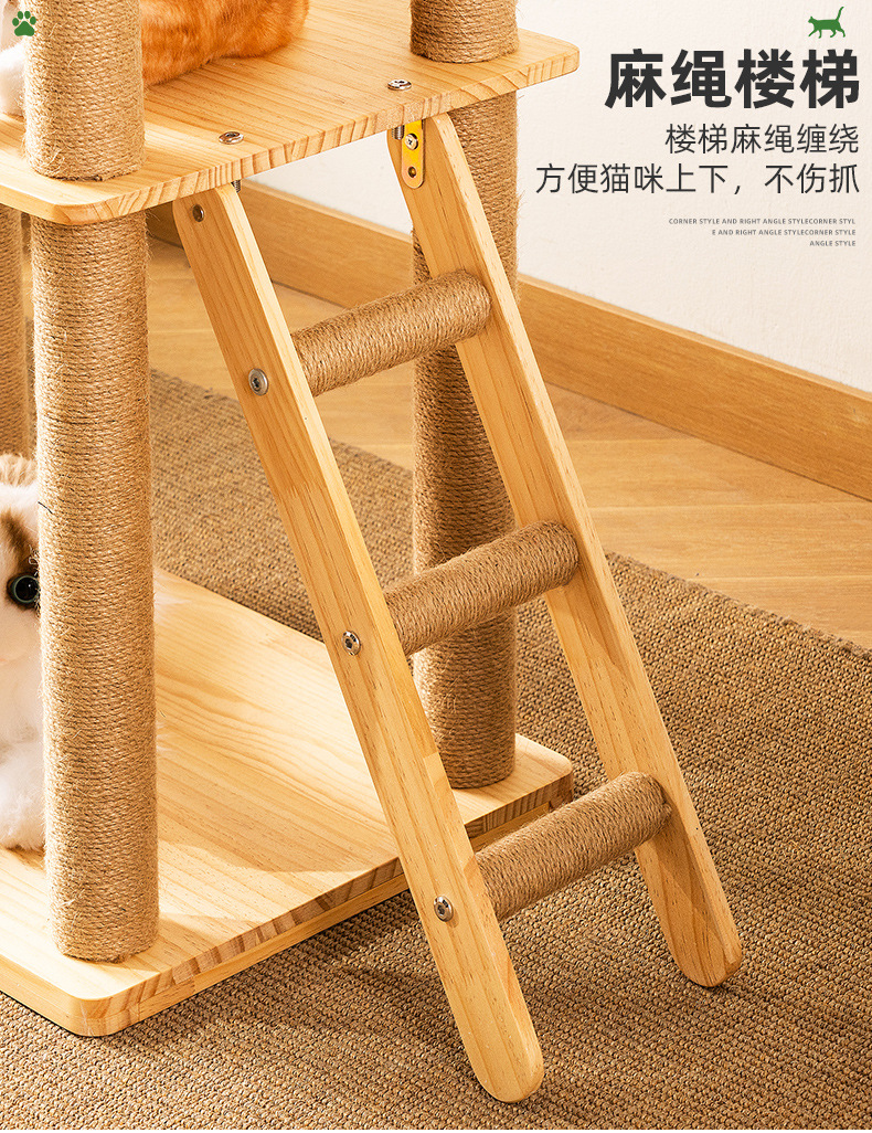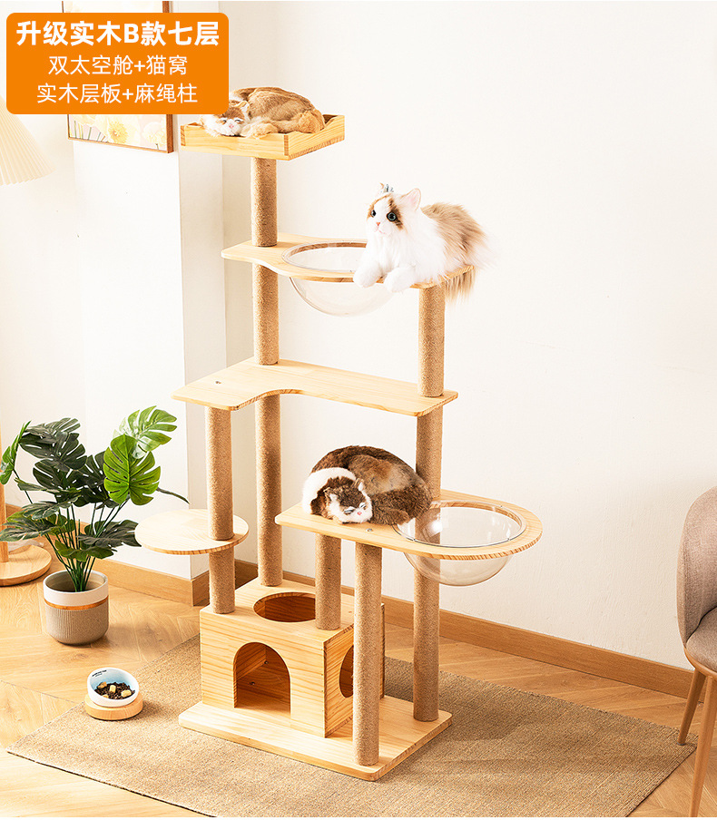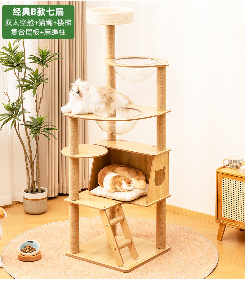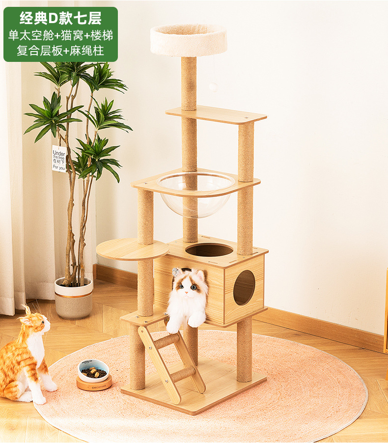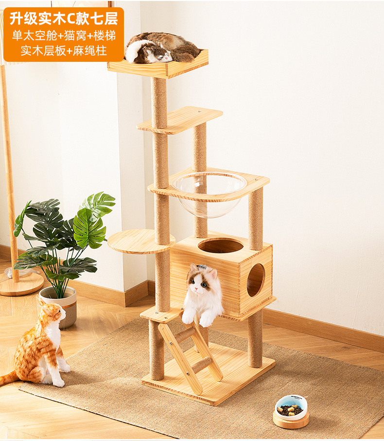 • [모두 대마줄기둥] 업그레이드된 원목 C형 - 7단(단일 우주캡슐 + 대형 고양이 둥지 + 계단)