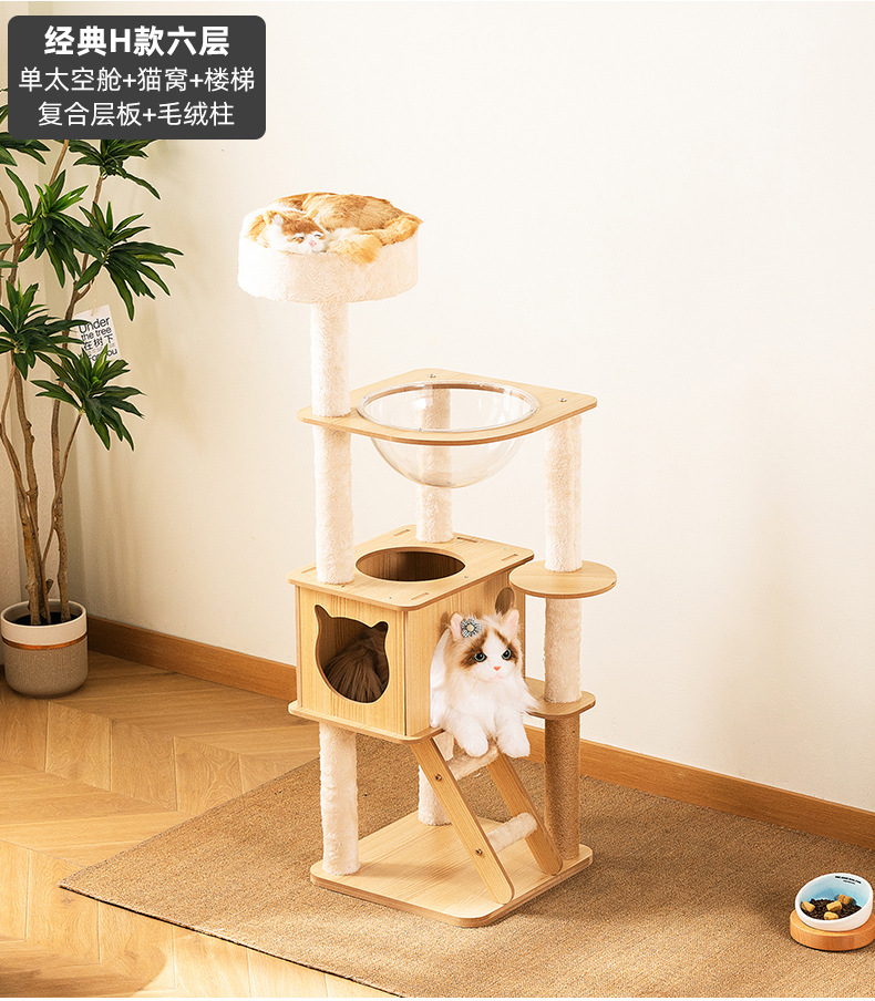 • [플러시 컬럼] 클래식 복합 보드 H형 - 6단(단일 우주 캡슐 + 대형 고양이 둥지 + 계단)