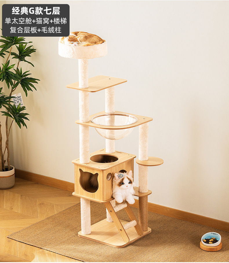 • [플러시 컬럼] 클래식 복합보드 G형 - 7단(단일 우주캡슐 + 대형 고양이 둥지 + 계단)