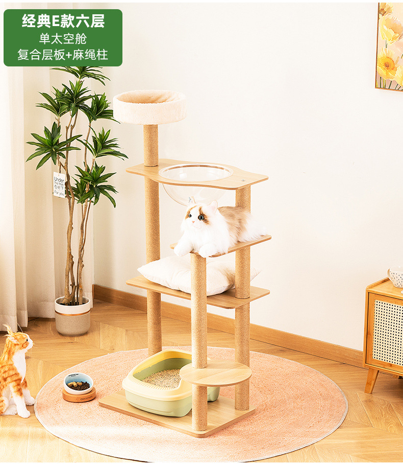 • [풀마줄기둥] 클래식 복합보드 E타입 - 6단(단일 우주캡슐 + 대형 고양이 둥지)