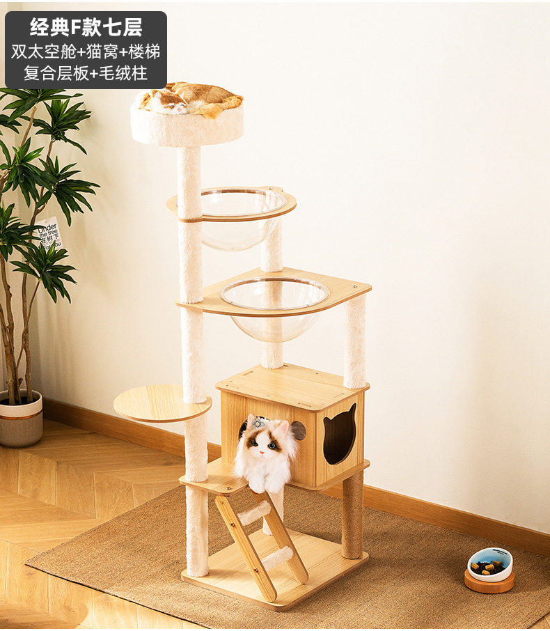 • [플러시 컬럼] 클래식 복합 보드 F형 - 7단(이중 우주 캡슐 + 대형 고양이 둥지 + 계단)