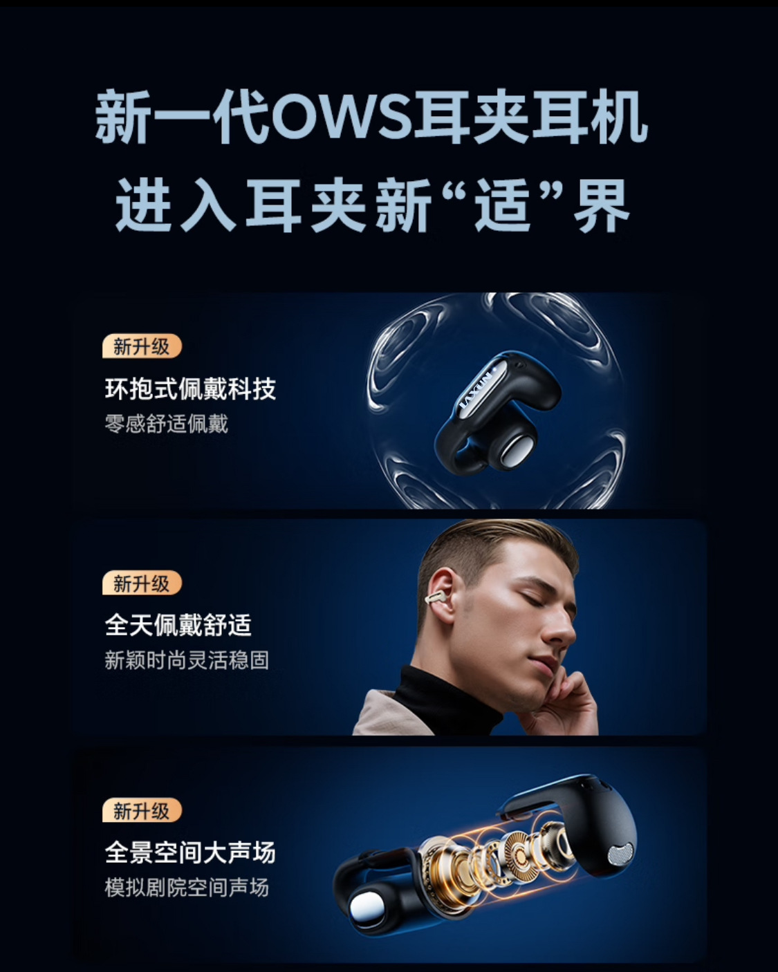 AI 번역 기능이 탑재된 인기 있는 크로스보더 이어클립형 오픈형 OWS 블루투스 이어폰, 스포츠용 귀걸이형 노이즈 캔슬링 이어폰스토어 가기