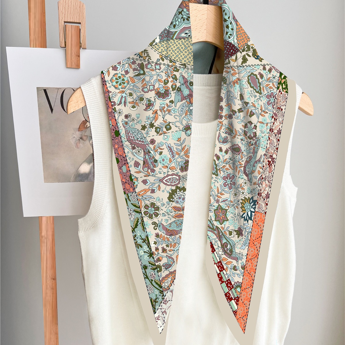 실크 스카프 새로운 도착 긴 다이아몬드 스카프 리본 여자 봄과 여름 올 매치 장식 헤드웨어 유행 한국 스타일 작은 스카프