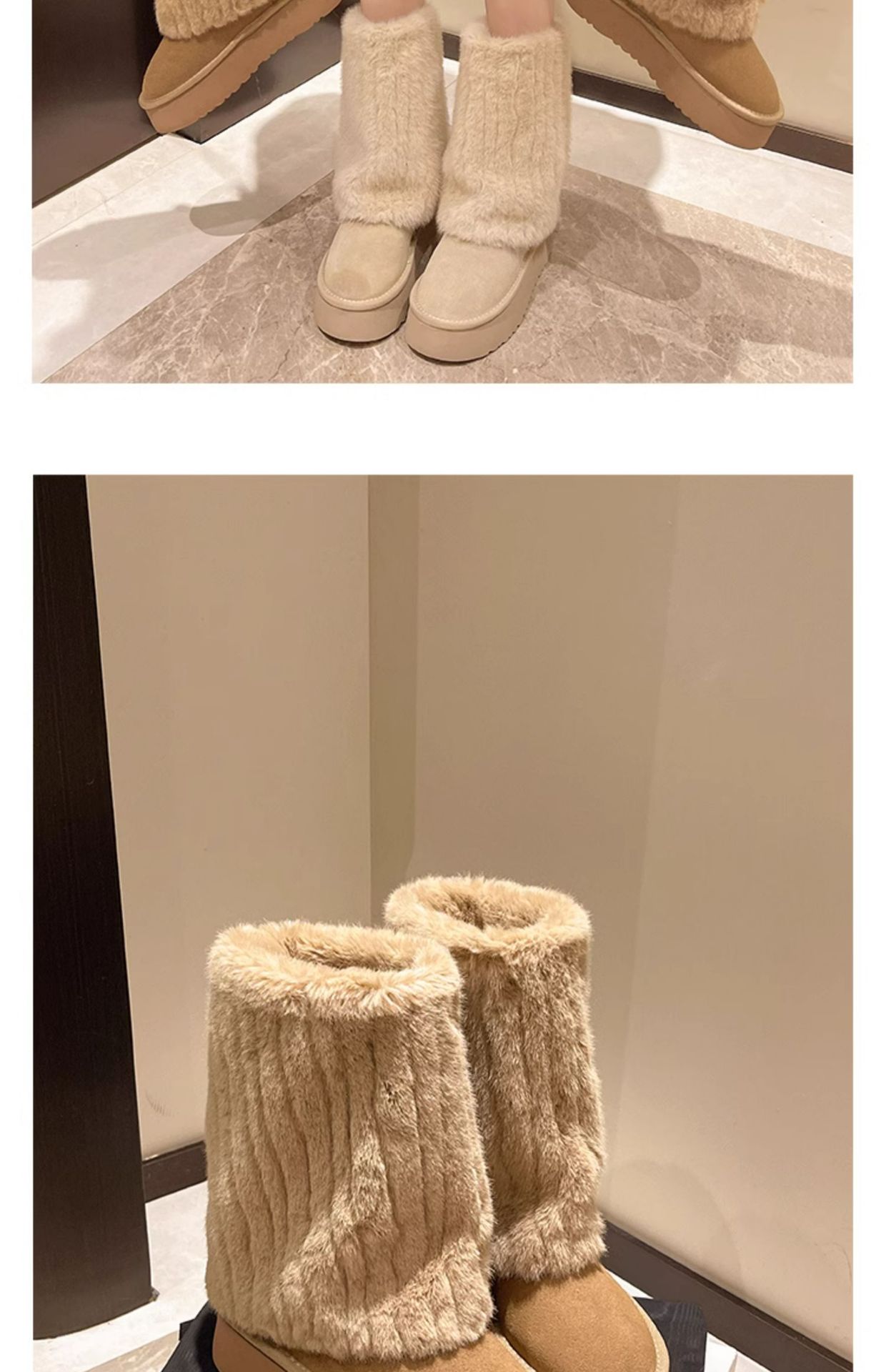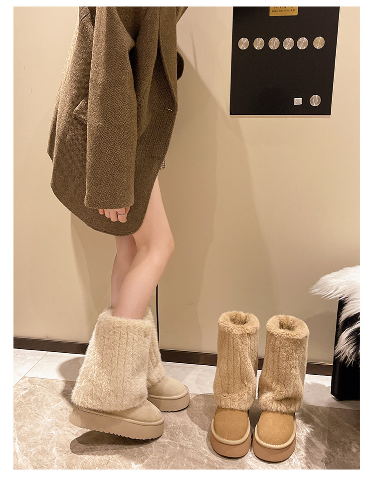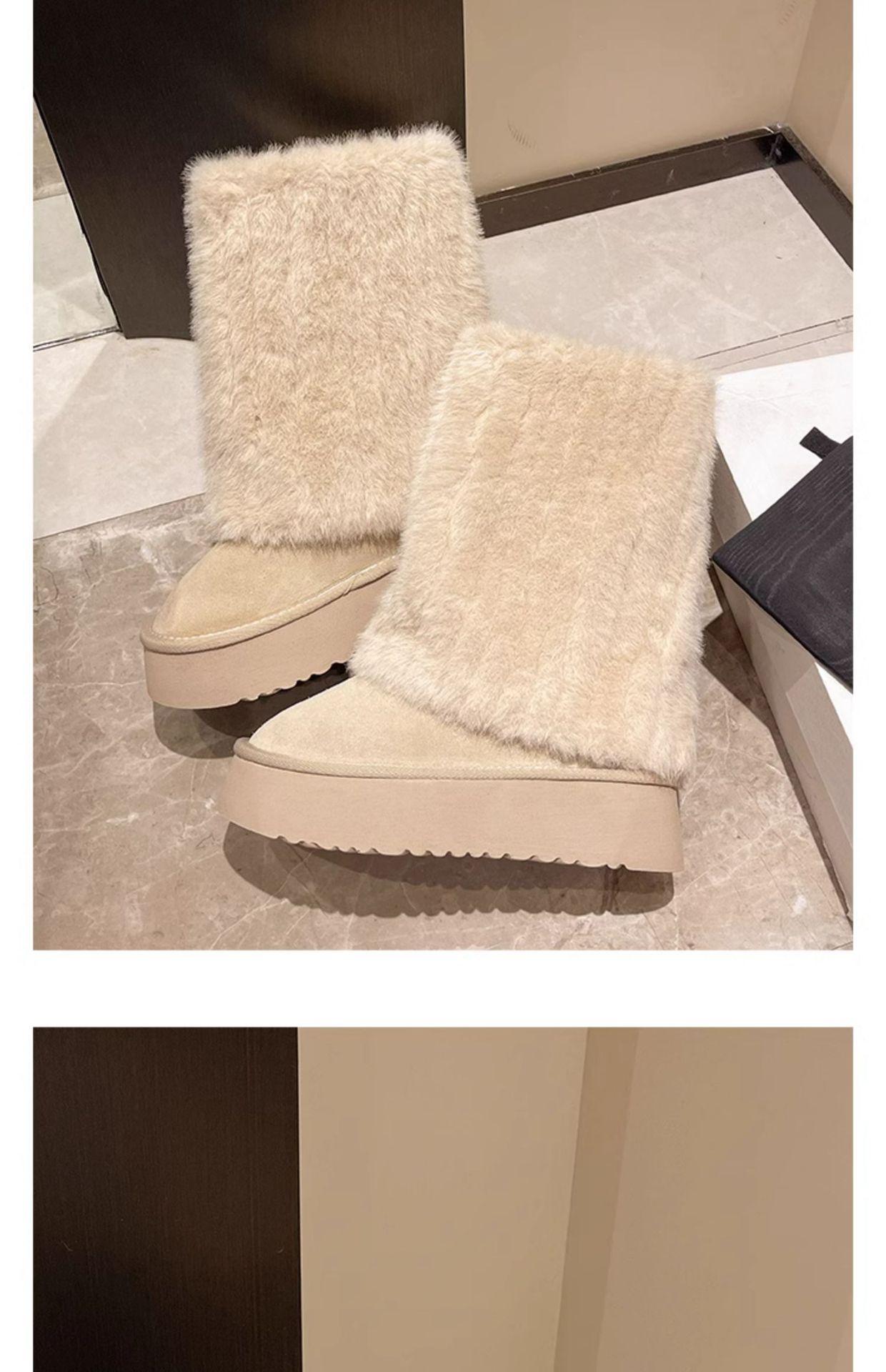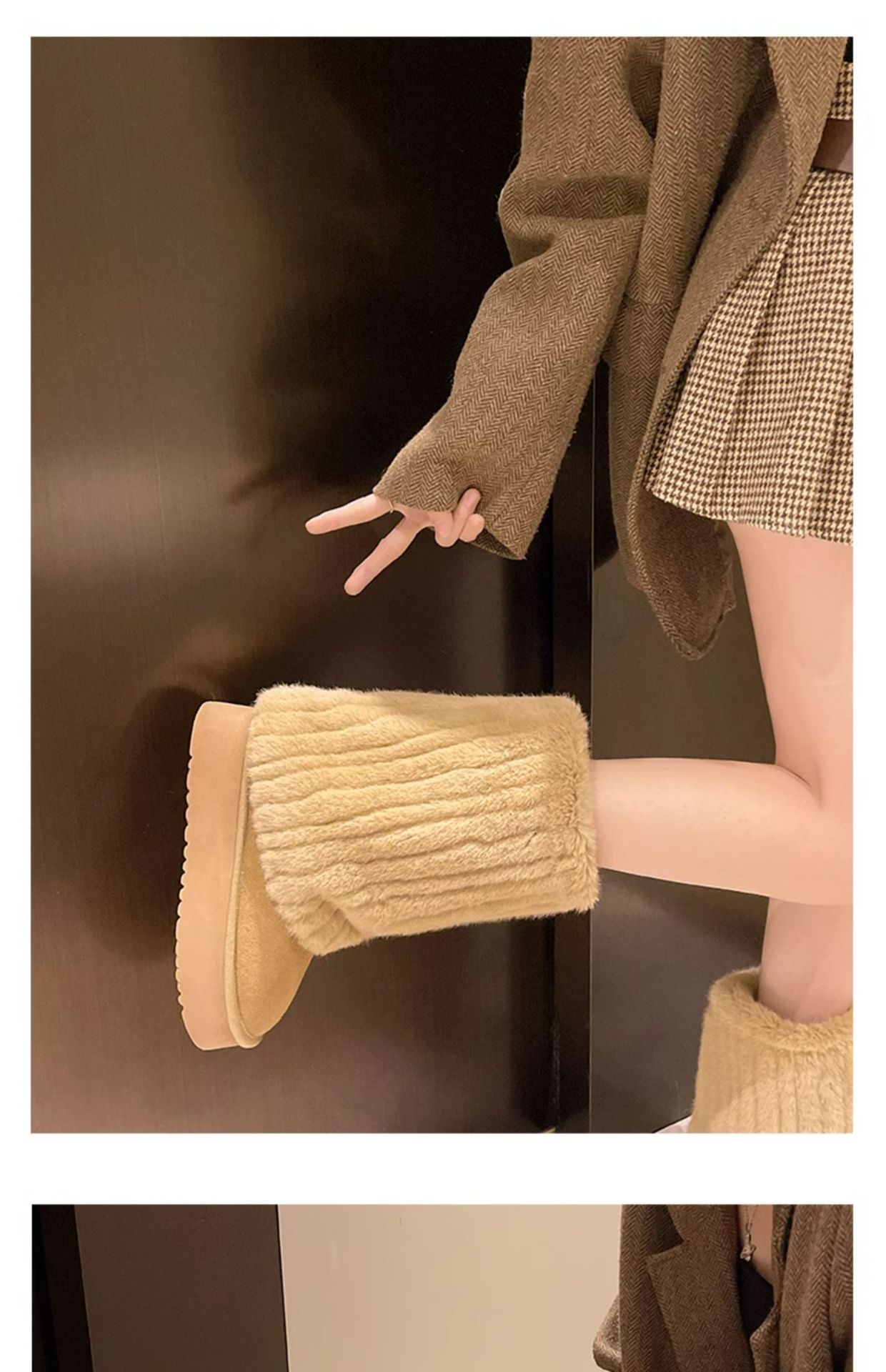 오리지널 틈새 스노우 부츠 여성용 봉제 귀여운 크림 짧은 튜브 따뜻한 마오 부츠 겨울 슬리브 두꺼운 바닥 높이 증가 신발스토어 가기