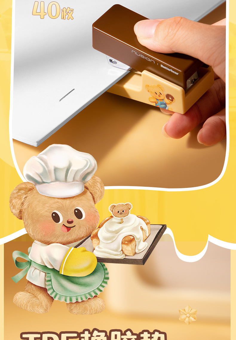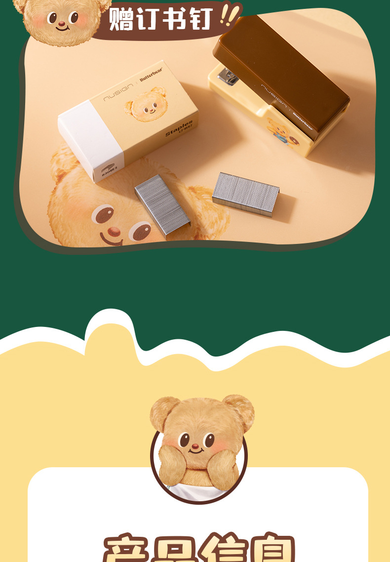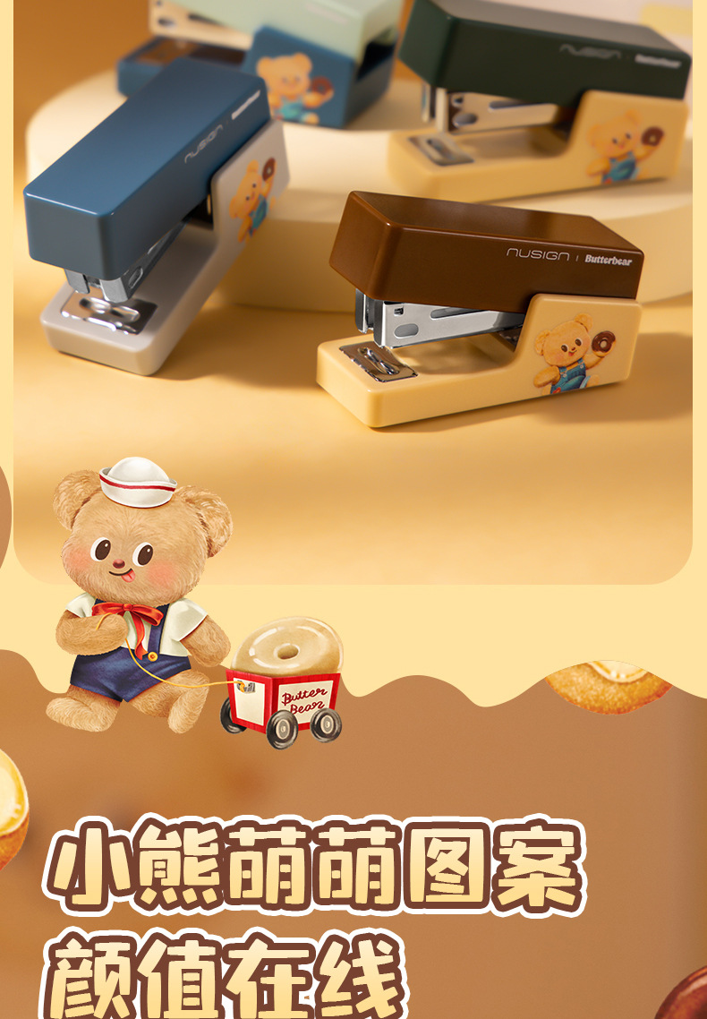 델리 버터 베어 공동 스테이플러 Newsey 초등 학생을위한 휴대용 스테이플러 미니 스테이플러 세트스토어 가기