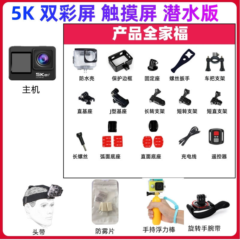 • 5K 다이빙 버전 듀얼 컬러 스크린 터치 버전 - 듀얼 배터리 + 64G 메모리 카드
